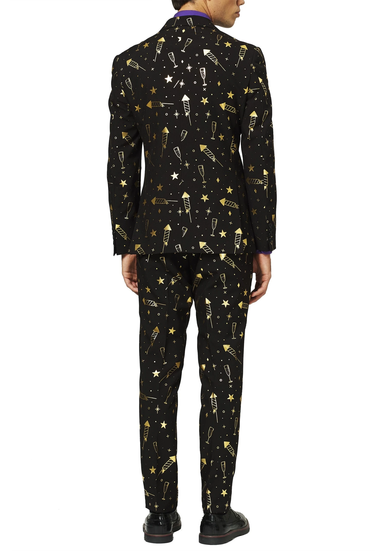 Even if our original idea of making a suit out of fireworks never pans out, we can still feel pretty good know that you’ll be out there rocking this Fancy Fireworks Opposuit. With a glimmering gold look, it’s great for your July 4th party or for New Years Eve