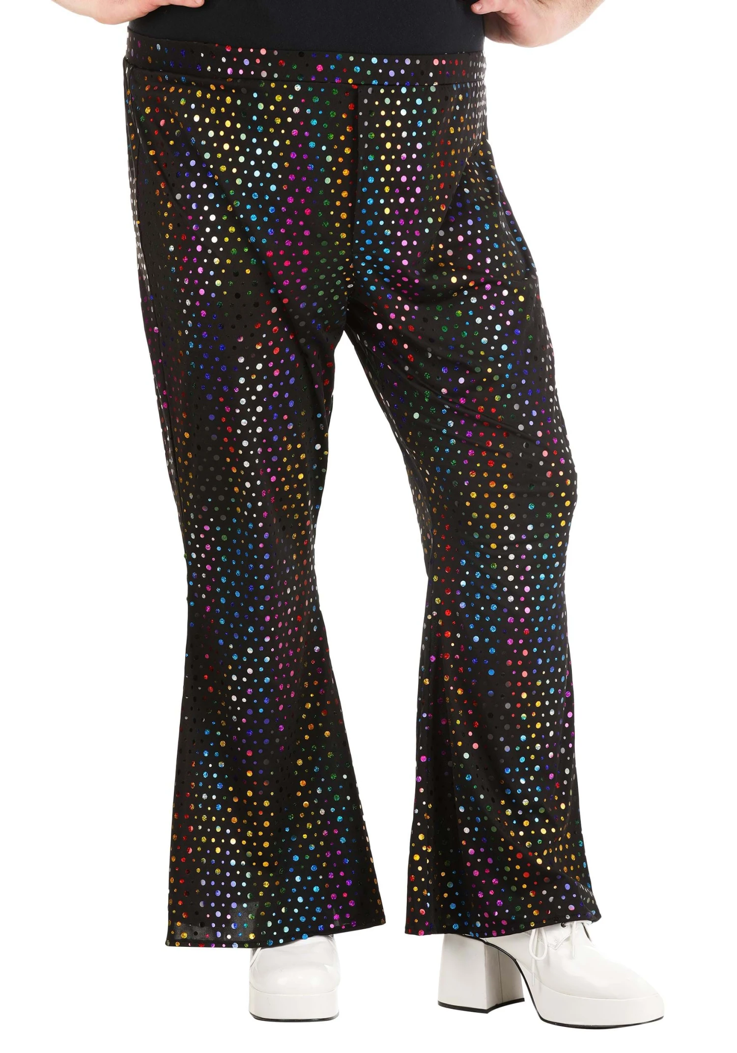 Welcome to the era of disco dazzle with our Men’s Plus Size Dazzling Disco Costume Pants! These pants are like a time machine that takes you straight to the heart of the 70s disco fever. Perfectly pairing with our Men’s Dazzling Disco Shirt, these pants are for the man who isn’t afraid to shine and shimmer on the dance floor.