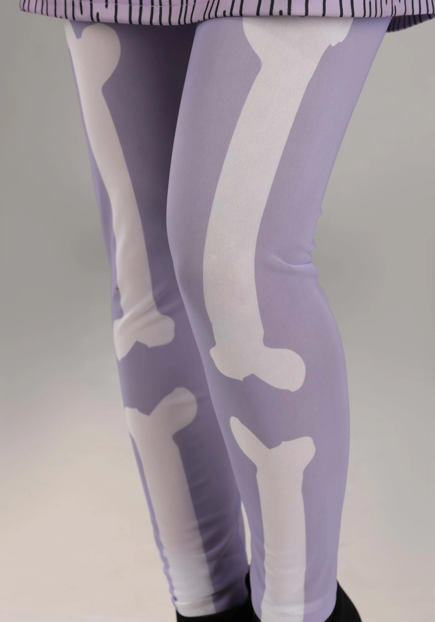 - Mesh, nylon fabric tights have printed bones, elastic waistband