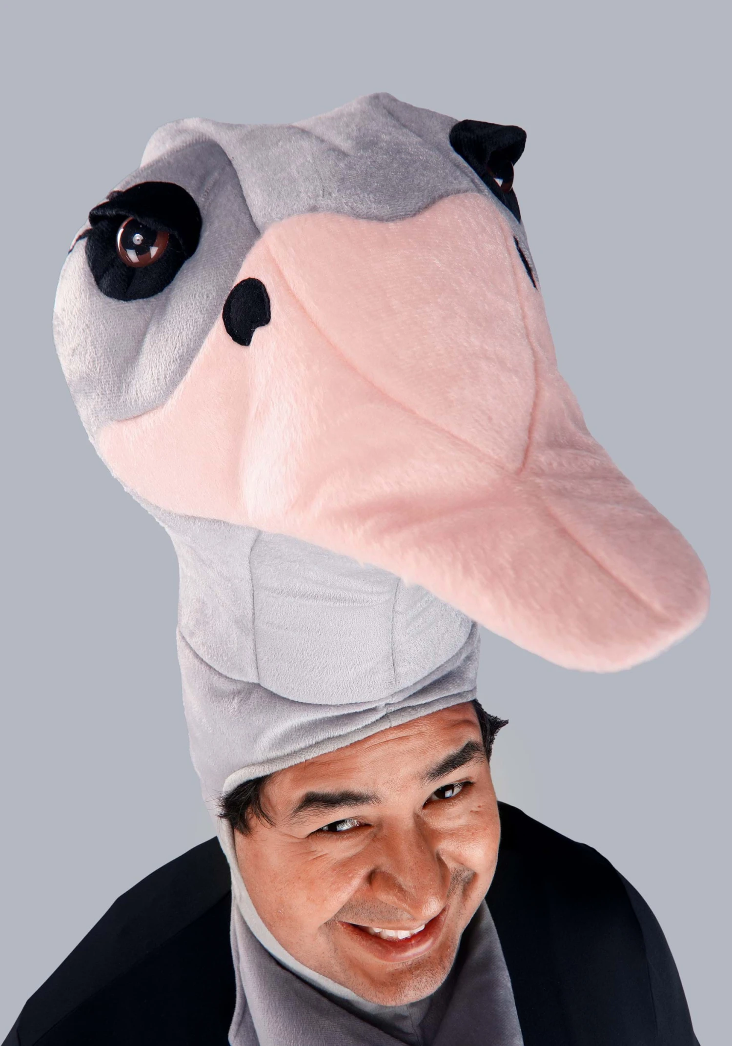The costume includes three main pieces: a hooded shirt, a pair of pants, and a large, foam-backed bodypiece. The shirt is made of a soft polyester-spandex blend and features a stuffed ostrich head perched right above your own, complete with a long neck, value eyes, and a beak that’s just the right amount of expressive. A second stuffed neck hangs down the front for maximum optical illusion weirdness.