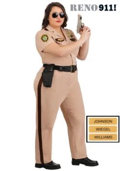 If you’ve got the authority of a sergeant and the sass of a sitcom, this Plus Size Reno 911 Deputy Officer Costume is your new uniform. Inspired by the delightfully chaotic law enforcement team of Reno 911!, this outfit brings the heat, the badges, and the questionable professionalism—all in one beige-tastic package. Whether you’re patrolling the punch bowl or ticketing bad dance moves, you’ll be ready to keep the party under arrest.