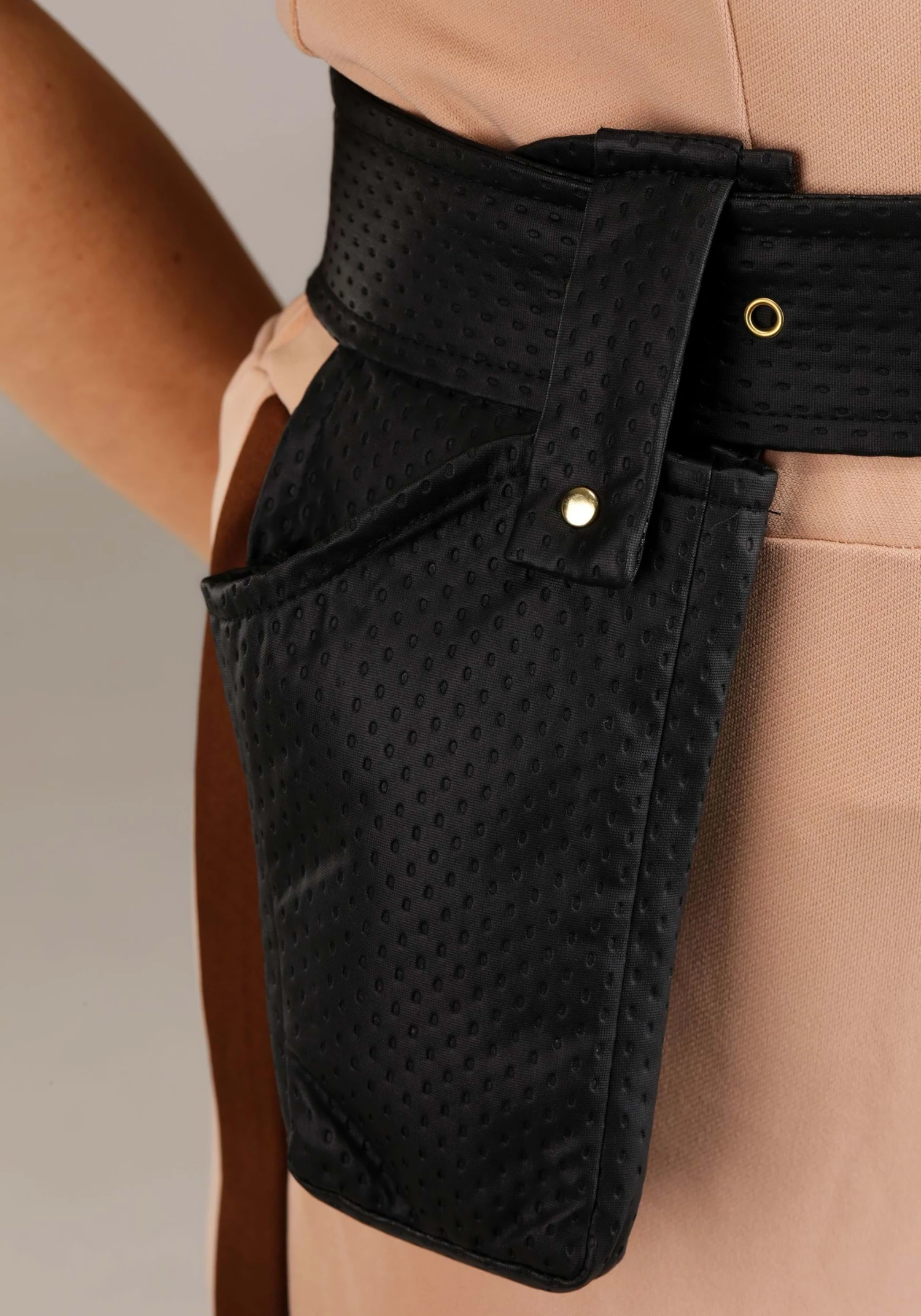 The shirt features brown flap pockets, value-up front, and shoulder epaulets that practically demand a dramatic entrance. The pants have a high-waisted fit with a straight leg and just enough stretch to allow for impromptu foot chases or exaggerated slow-motion exits. The included belt comes with an attached holster—perfect for holding plastic props, snacks, or a very official-looking notebook of made-up citations.