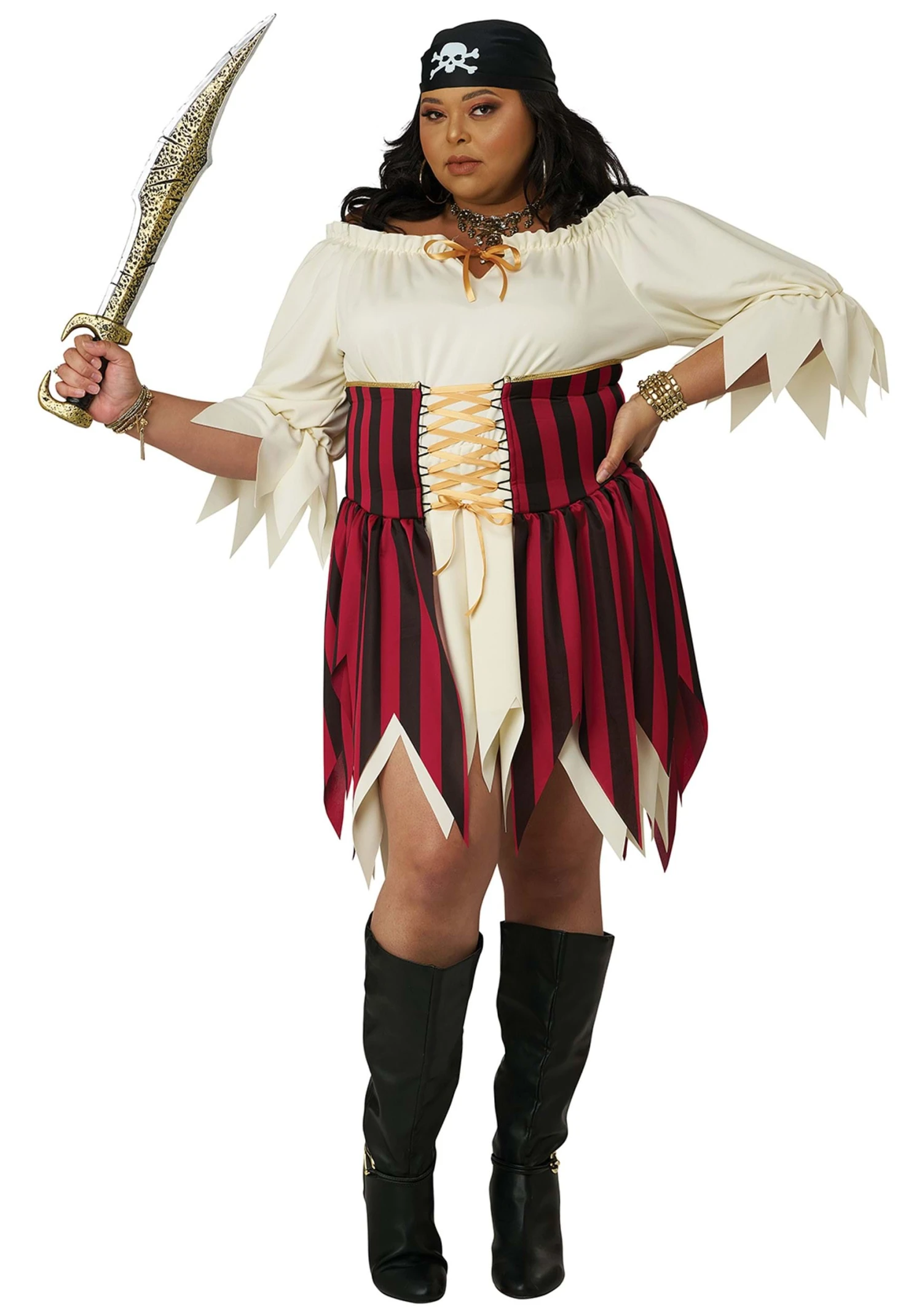 Set sail in high seas fashion with the Women’s Plus Size Sultry Sea Pirate Costume—the perfect blend of swashbuckling sass and commanding presence. Whether you’re leading a crew of misfit marauders or just showing up to the costume party ready to steal some hearts (and snacks), this look says “Captain” loud and .