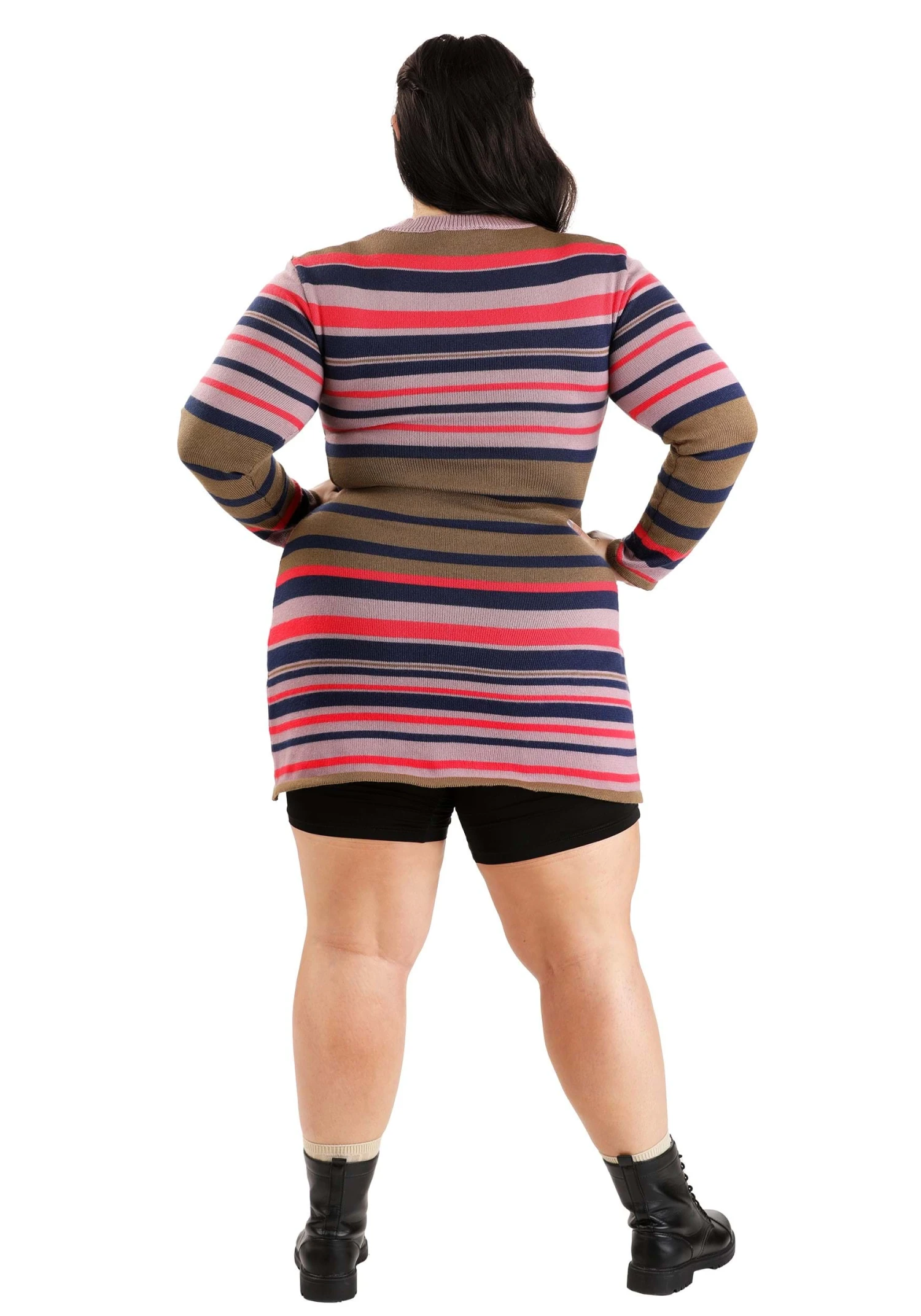 This is an exclusive Women’s Plus Size Astrid Striped Distressed Sweater Dress.