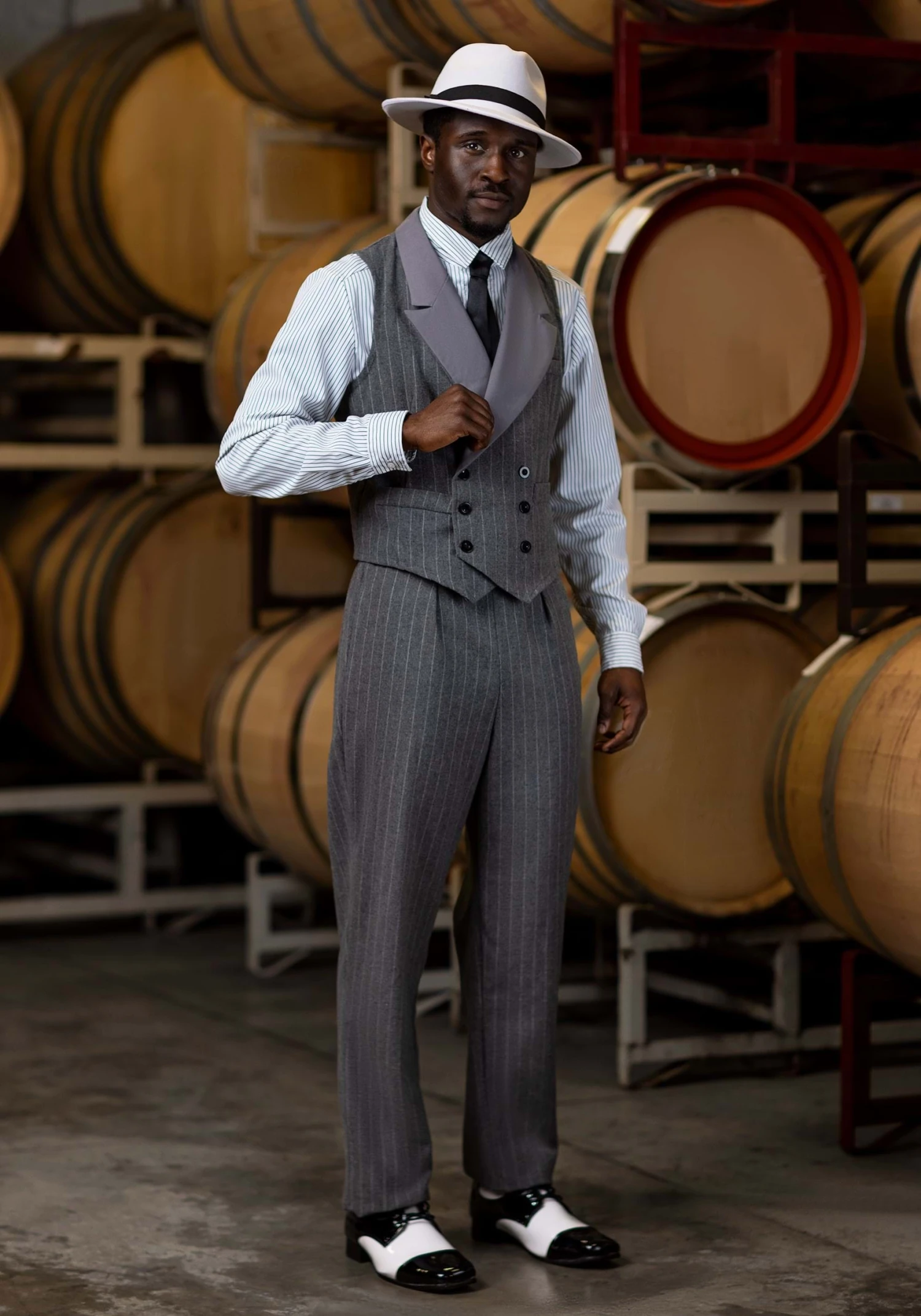 Made and designed right here in our own costume studios, we studied up on classic 20s styles, and decided a vest and pants combo would be just the right look for a brand new style. This costume was created with that idea in mind! It comes with a shirt, vest, pants, and a necktie. The vest and pants look like real suit pieces, and the gray with light pinstripes looks particularly debonair. The shirt and tie round out the ensemble, and you can add a fedora, Tommy gun, and saddle shoes to complete the style as we have it pictured. (Accessories sold separately.)