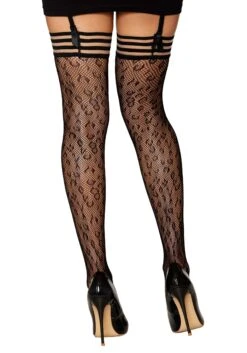 Dreamgirl Black High Waist Lace Print Fishnet Garter Belt For Women