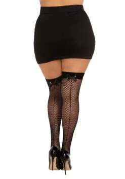 Dreamgirl Plus Size Lace Top Thigh High Fishnet Stockings For Women