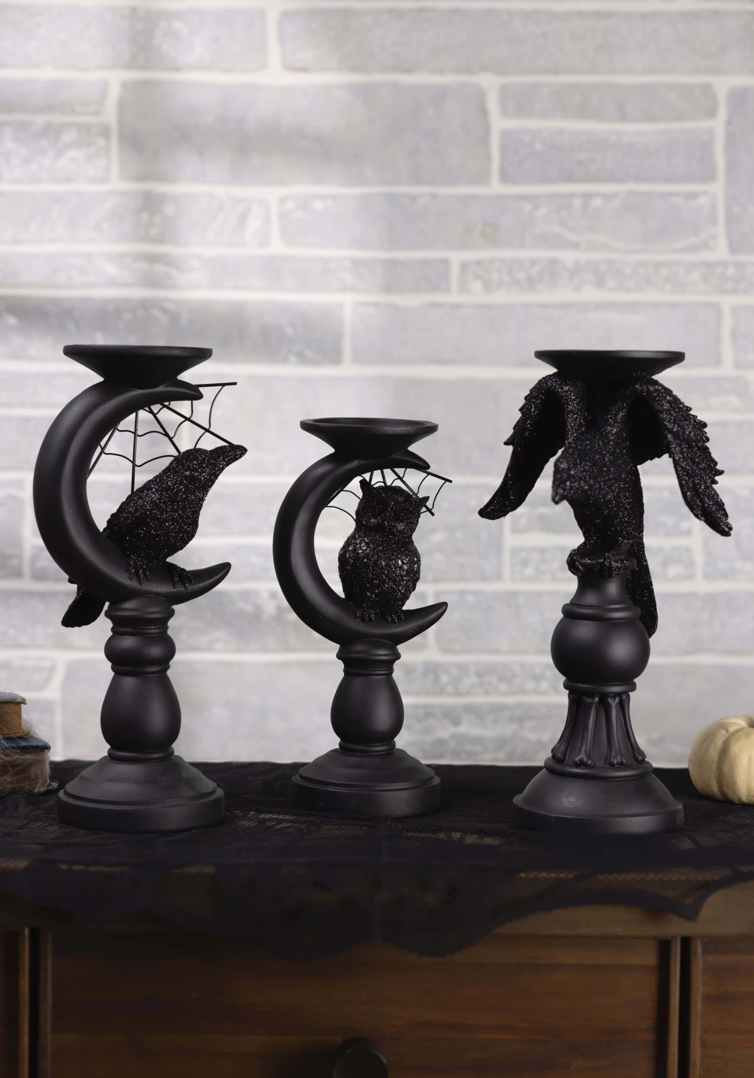 This is a Set of 3 Matte Black Halloween Candleholders.