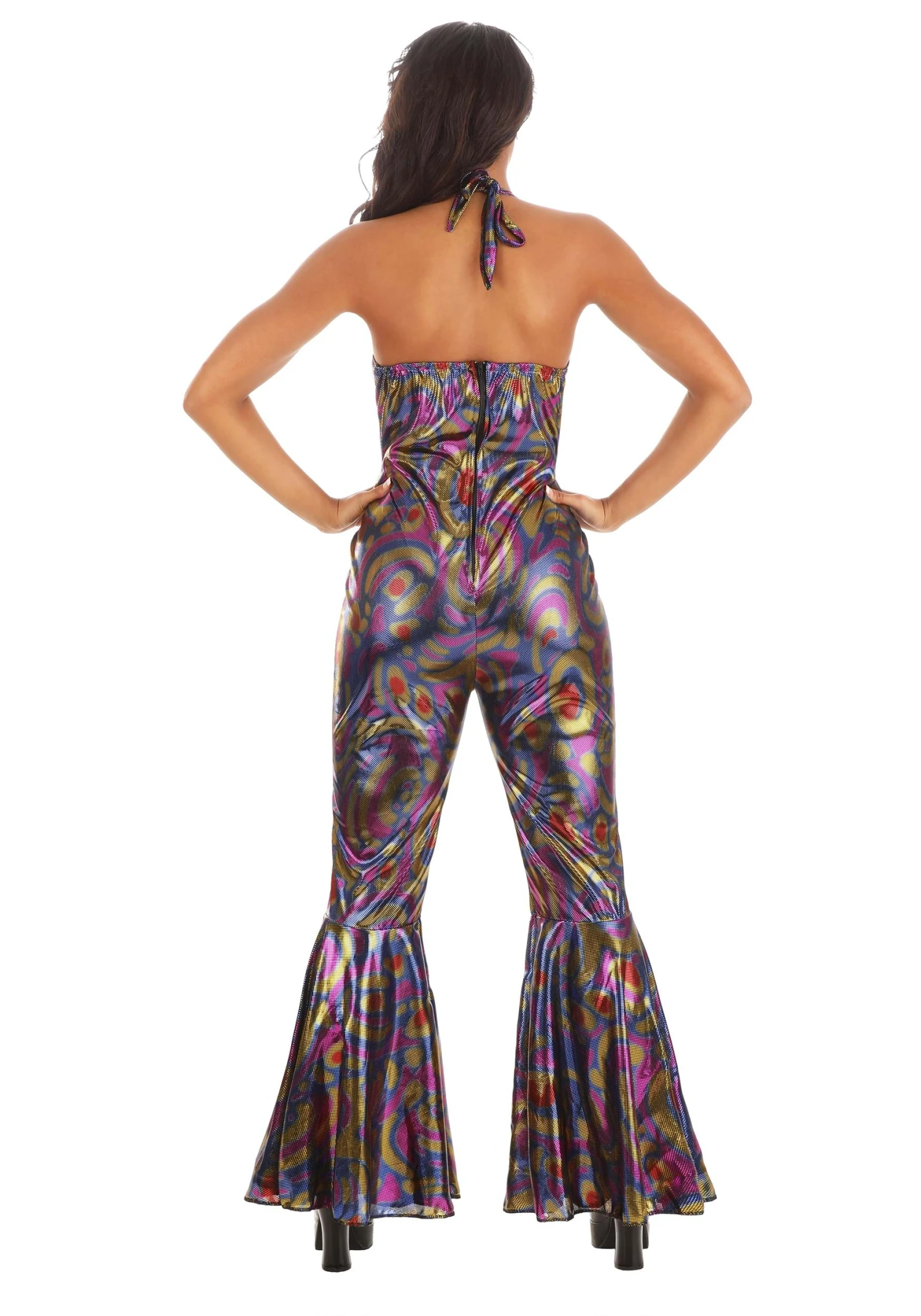 Our Women’s Sexy Disco Jumpsuit Costumes offers exactly that! With a sleek shape, outstanding color pattern, and tons of shimmer, we’re sure it’ll have you ready to shine on dance floors, on Halloween streets, and at every groovy venue.