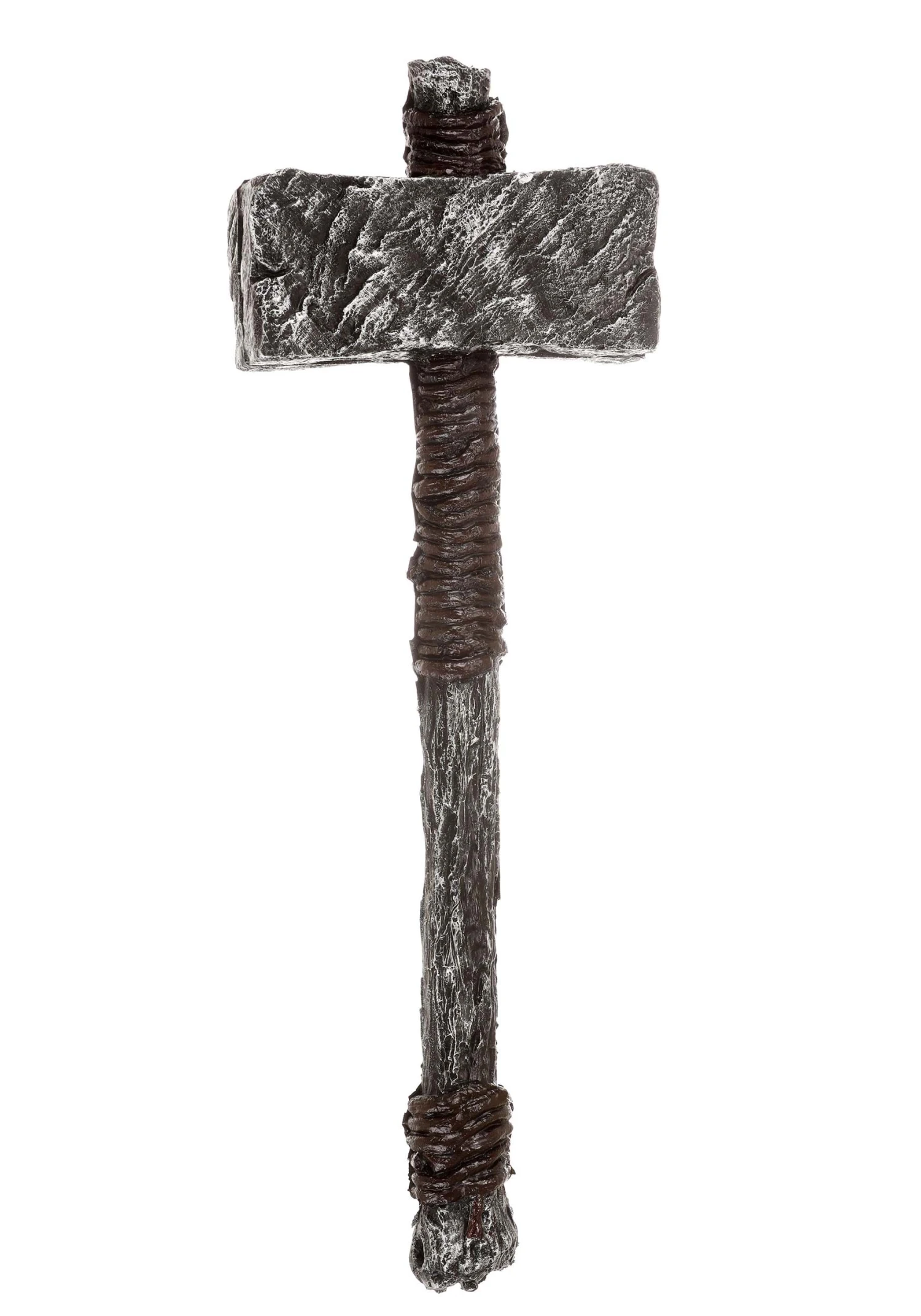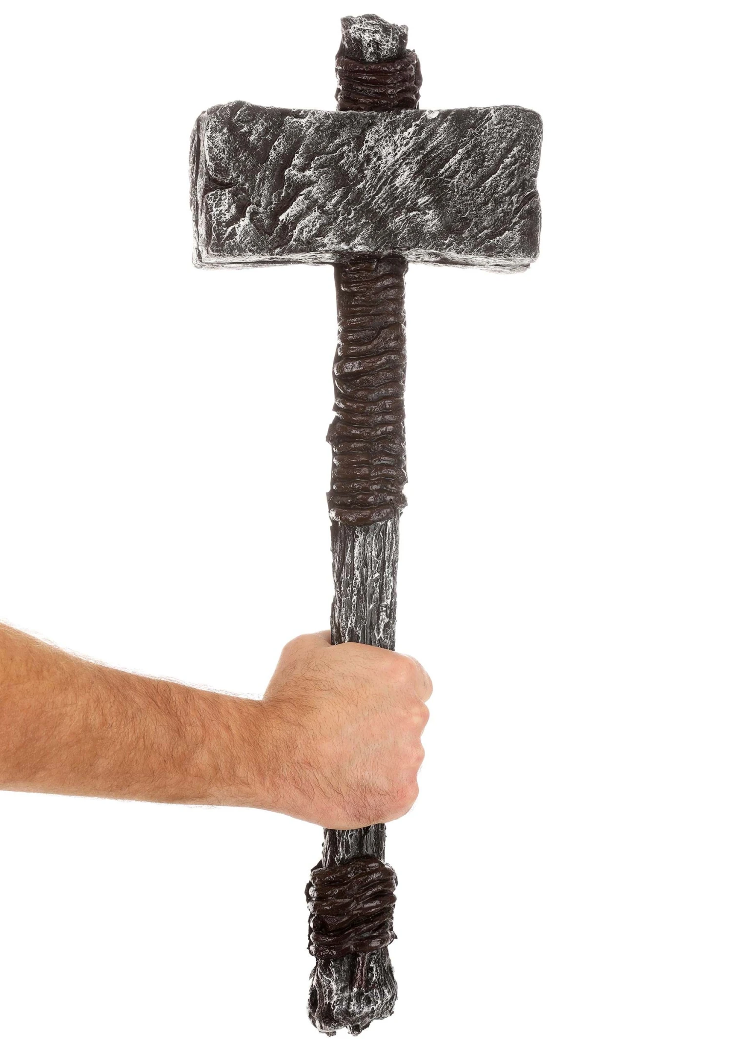 - Molded & painted to look like a iron head, wooden handle wrapped with rope for gripping