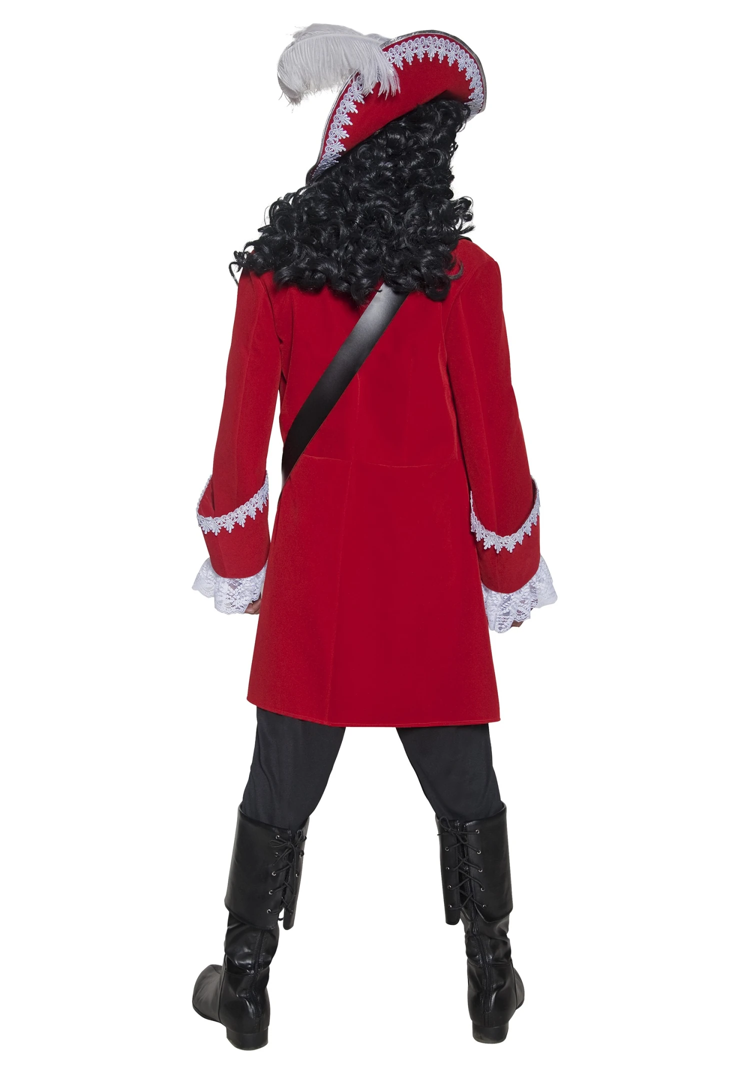 And, as always, we have got your back—and your regal crown—with this Men’s Regal Pirate Captain costume. The brilliant red velvet jacket has vivid silver braided trim and lace cuffs that scream that they are the threads of a prince rather than a pirate. But, the rugged faux leather vest with its puffing white jabot and matching silver trim and gleaming red satin sash meet in the middle to make you the perfect balance of high seas and high courts. The cropped pants ensure that you’ll be able to dance a pirate jig or parry a coming blow with equal ease. All you need now is a matching feathered captain hat and whatever accessories befit a captain of your stature and you’ll be ready to pillage whatever hoard is your rightful gain!