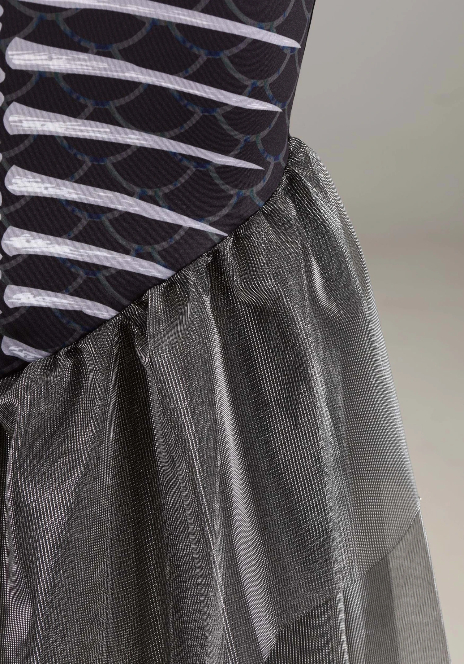 - From the knees down the dress has tiers of ruffled mesh to suggest a mermaid’s tail