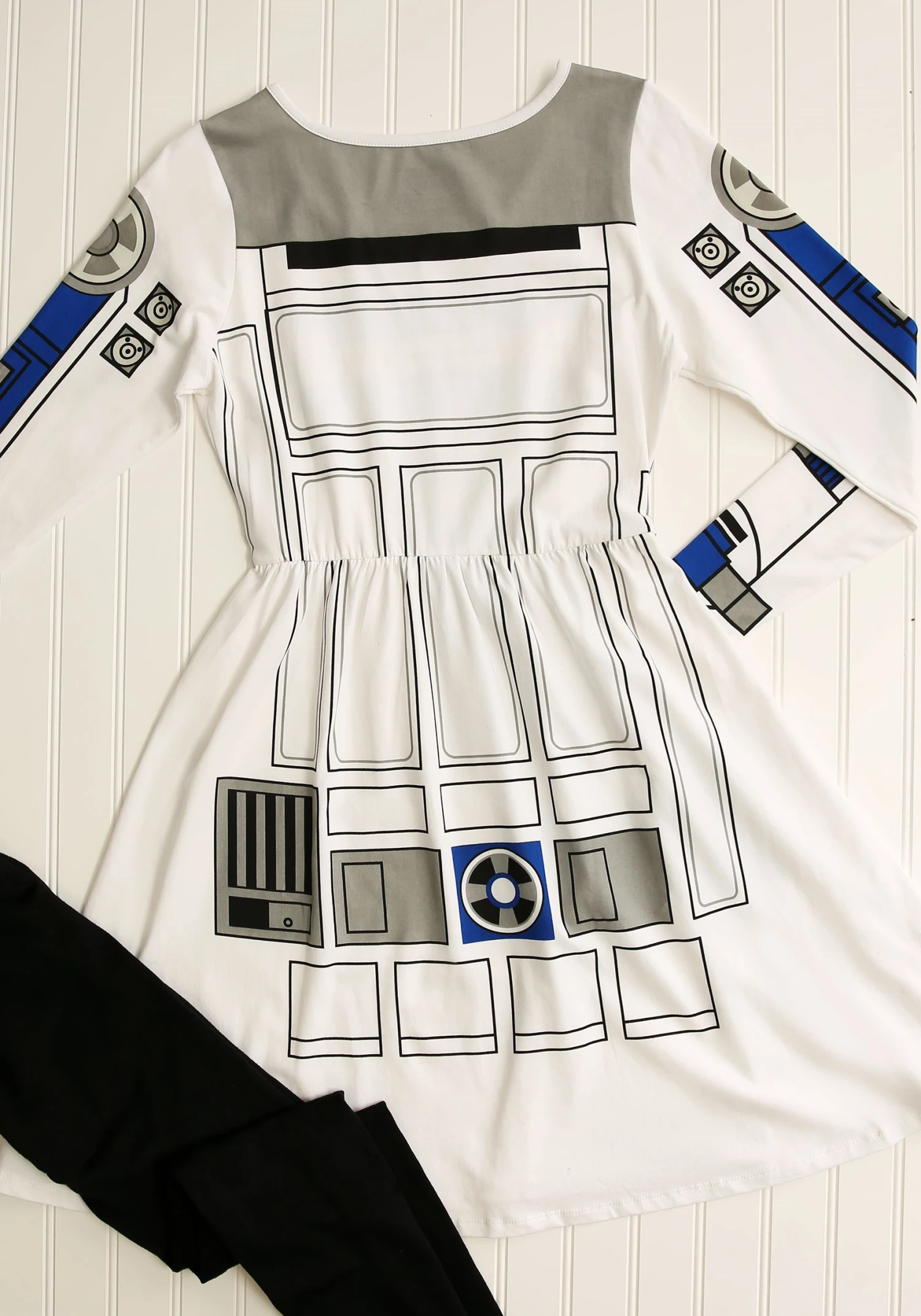 And who knows what the future might hold? In twenty years, we might be beeping and whistling about our outfits in Binary instead of typing in English on an old-fashioned keyboard! That’s what’s great about science fiction: the possibilities are limitless—and more often than not, they involve charismatic little robots. But you don’t have to wait for the future or travel to a galaxy far, far away. You can get this great dress right here, right now!