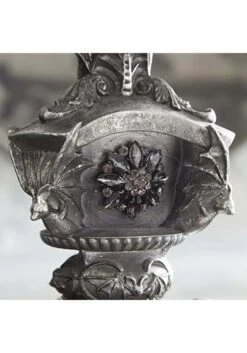 20.5″ Silver Resin Skull & Bat Candle Holder Halloween Decoration