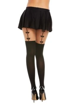 Dreamgirl Women’s Sheer Beige And Black Faux Thigh High With Bows