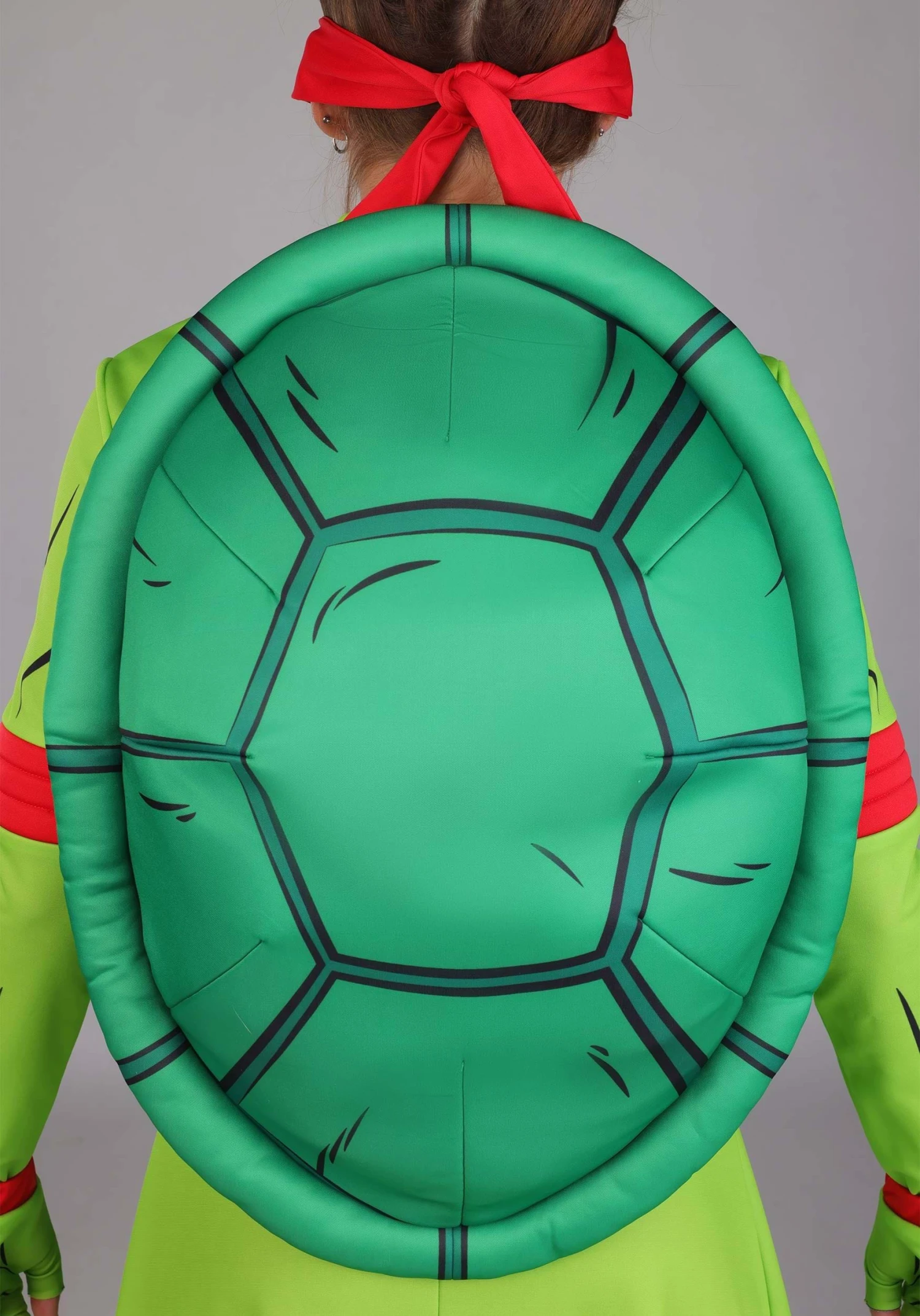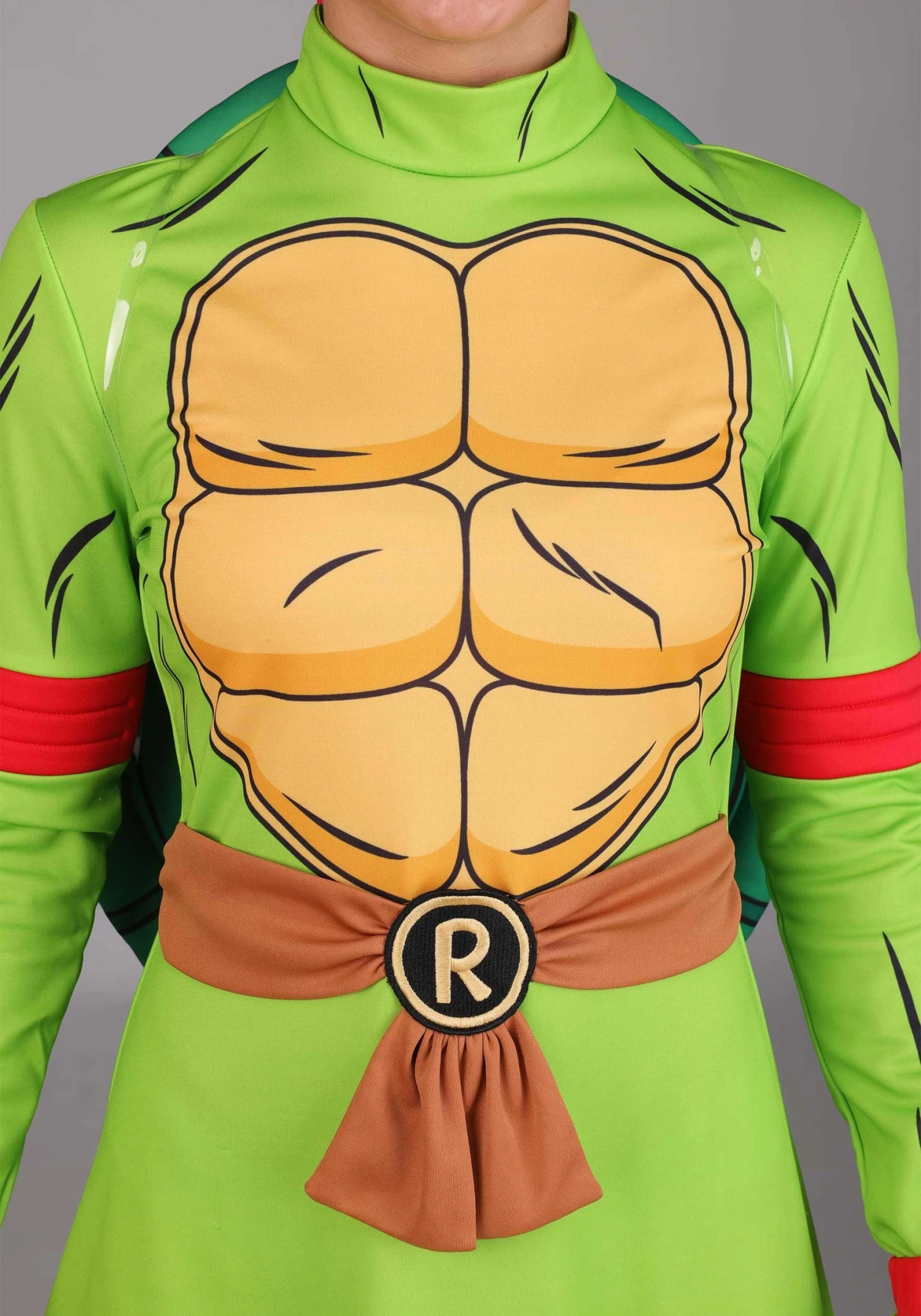To complete the transformation, the costume includes a dark green turtle shell that slips over your shoulders with a translucent strap, staying secure no matter how intense your ninja moves get. The tie-on red eye mask features printed eye holes and fits comfortably across your face for that unmistakable Raphael glare.