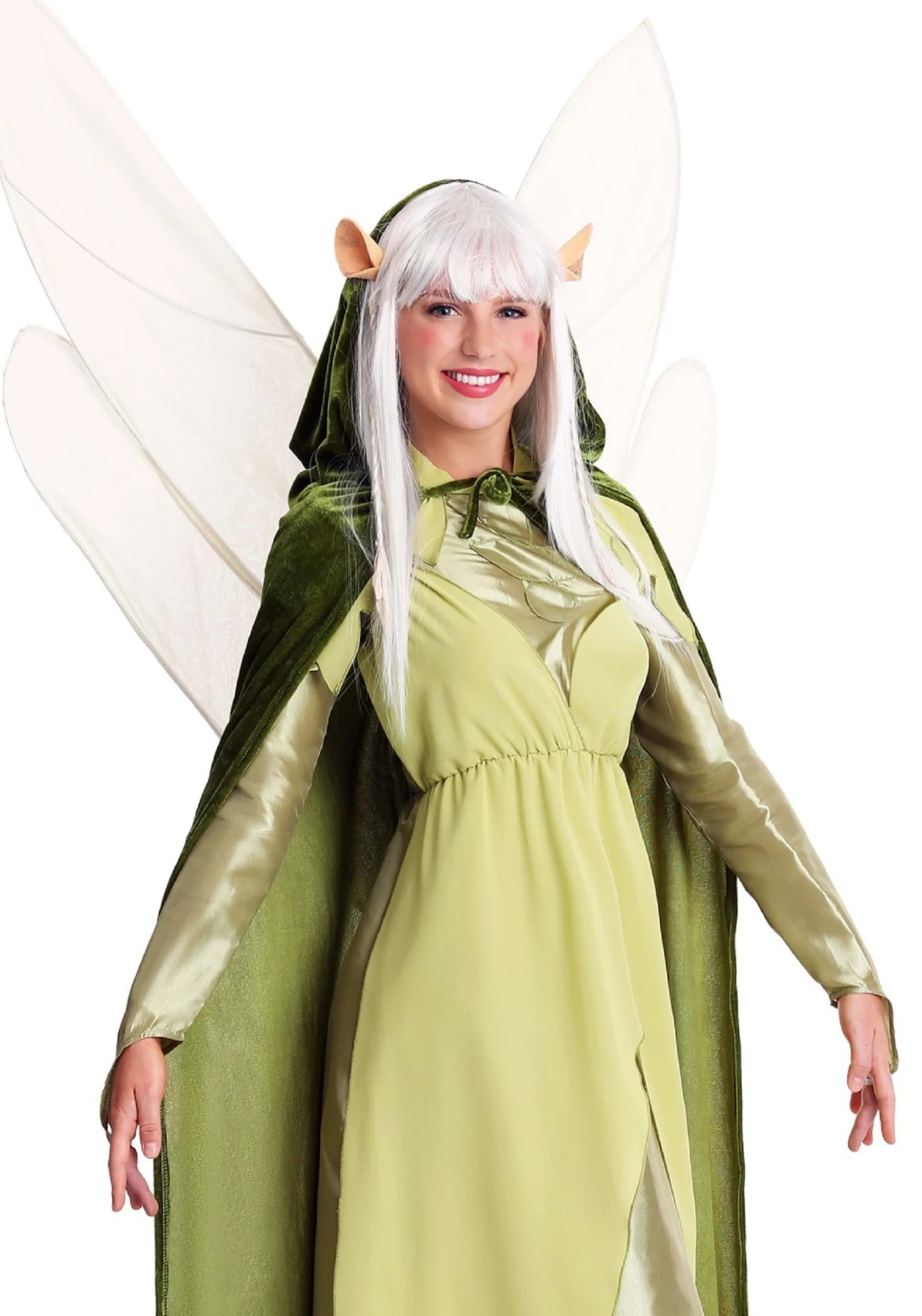 Our in-house designers have stayed hidden right under the Skeksis beaks so we could help all the Gelflings out. Help complete the prophecy and save the world with this officially licensed Kira Costume from The Dark Crystal. This exclusive look includes a lovely multi-shaded green gown, textured with layers of chiffon. The dress drops to your ankles in deep V-shapes for that especially natural look. The dark green cape ties at your neck and features an oversized hood and snaps on the back where your ivory chiffon wings attach. All you’ll need next is a fuzzy Fizzgig to keep you company!