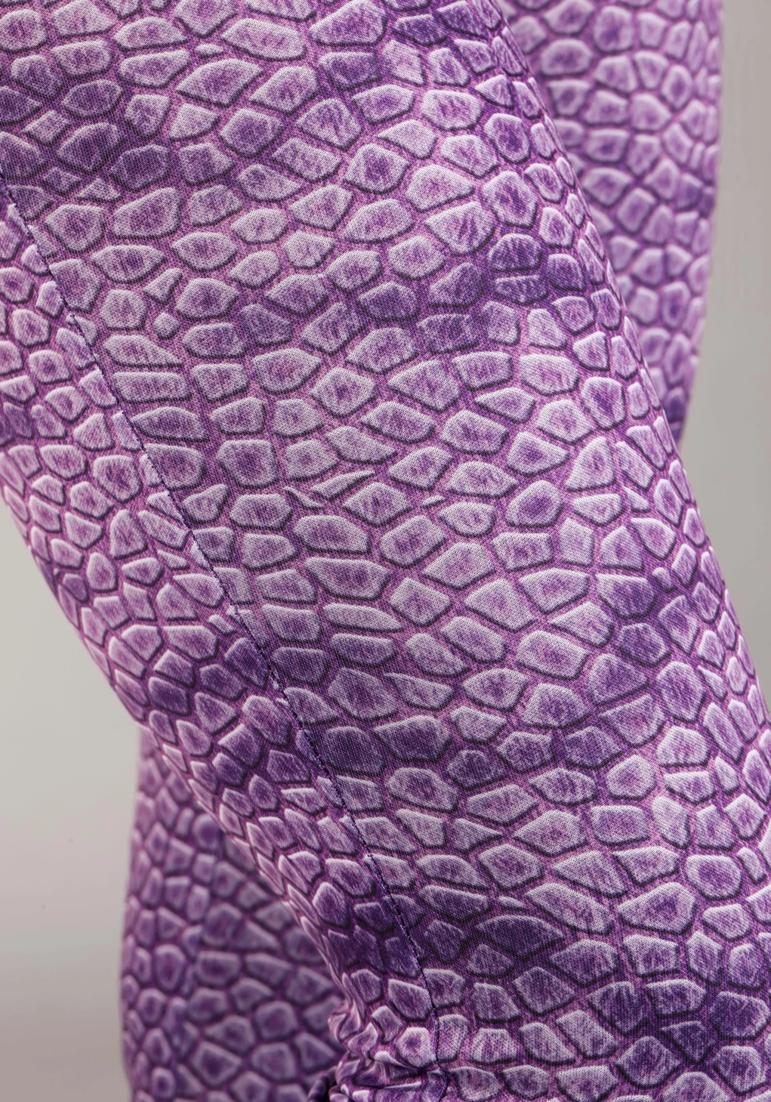 - Foam backed jersey knit corset has sublimation print, hook and loop fastener on the back, fiber filled jersey and vinyl tail sewn on the back
