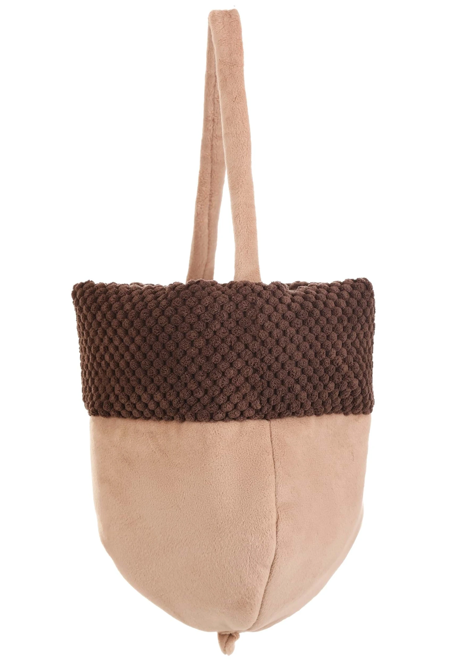 Squirrel away your candy this Halloween in an exclusive Acorn Candy Bag! The fabric tote is made of soft beige fabric that has been shaped like a giant acorn, with a rim of dark brown textured fabric across the top to resemble an acorn’s cap. A wide opening allows space for plenty of treats, and a beige strap lets you carry it comfortably.