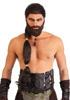 This Made by Us Warrior Wig will make you look right at home riding into battle on horseback. The wig ties low at the back of the neck and clasps in segments with gold bands down to your waist. The beard secures around your head and under the wig with an elastic band. With the segmented beard, everyone will know that you’ve never been defeated.