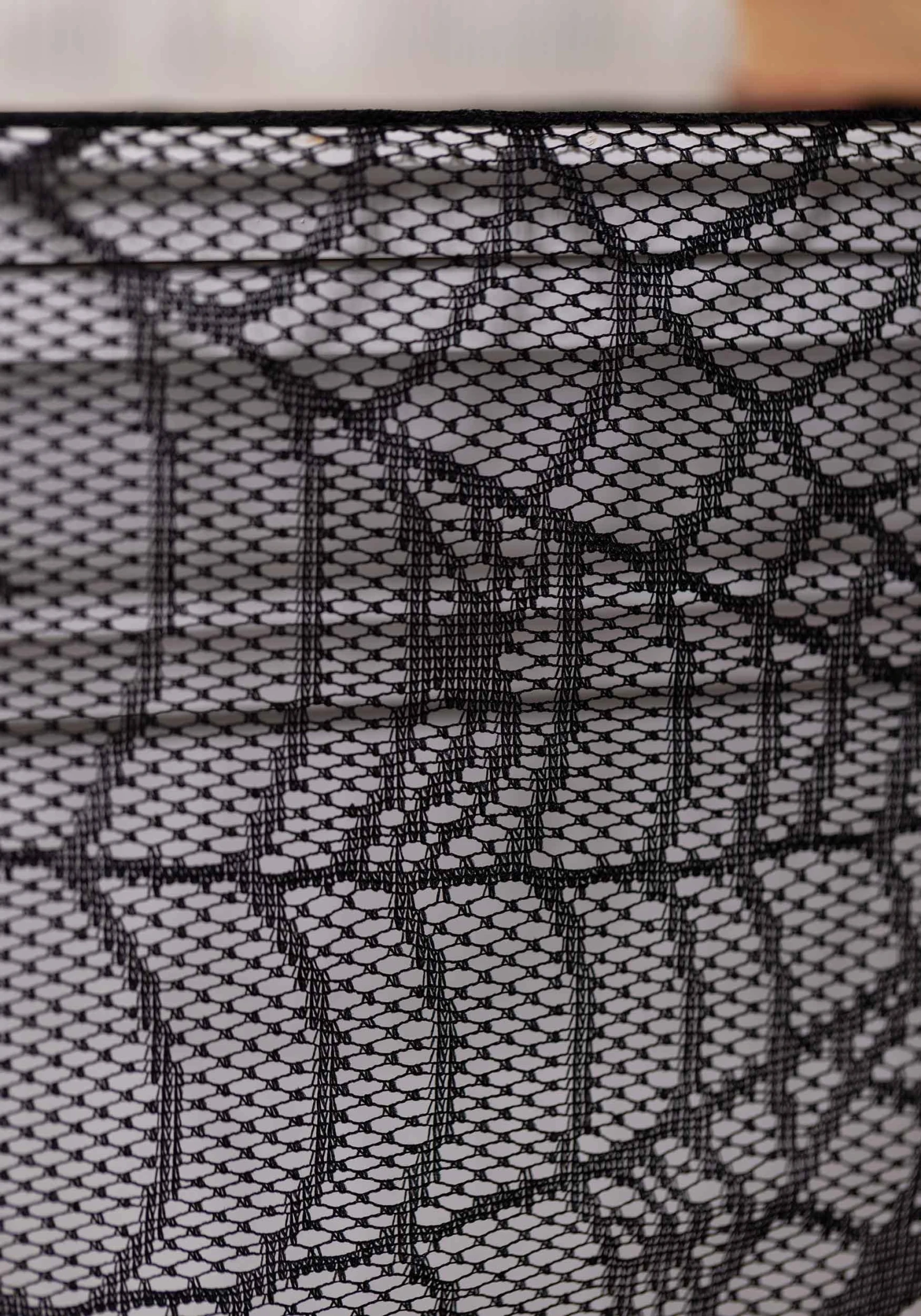 Even if you don’t love spiders, you’re going to love the seasonally spectacular flair that this exclusive Webs Gone Wild Mantel Halloween Scarf Decoration will give to your home! Made of black polyester machine lace, the scarf features knitted-in images of spiderwebs and a reverse-scalloped edge.