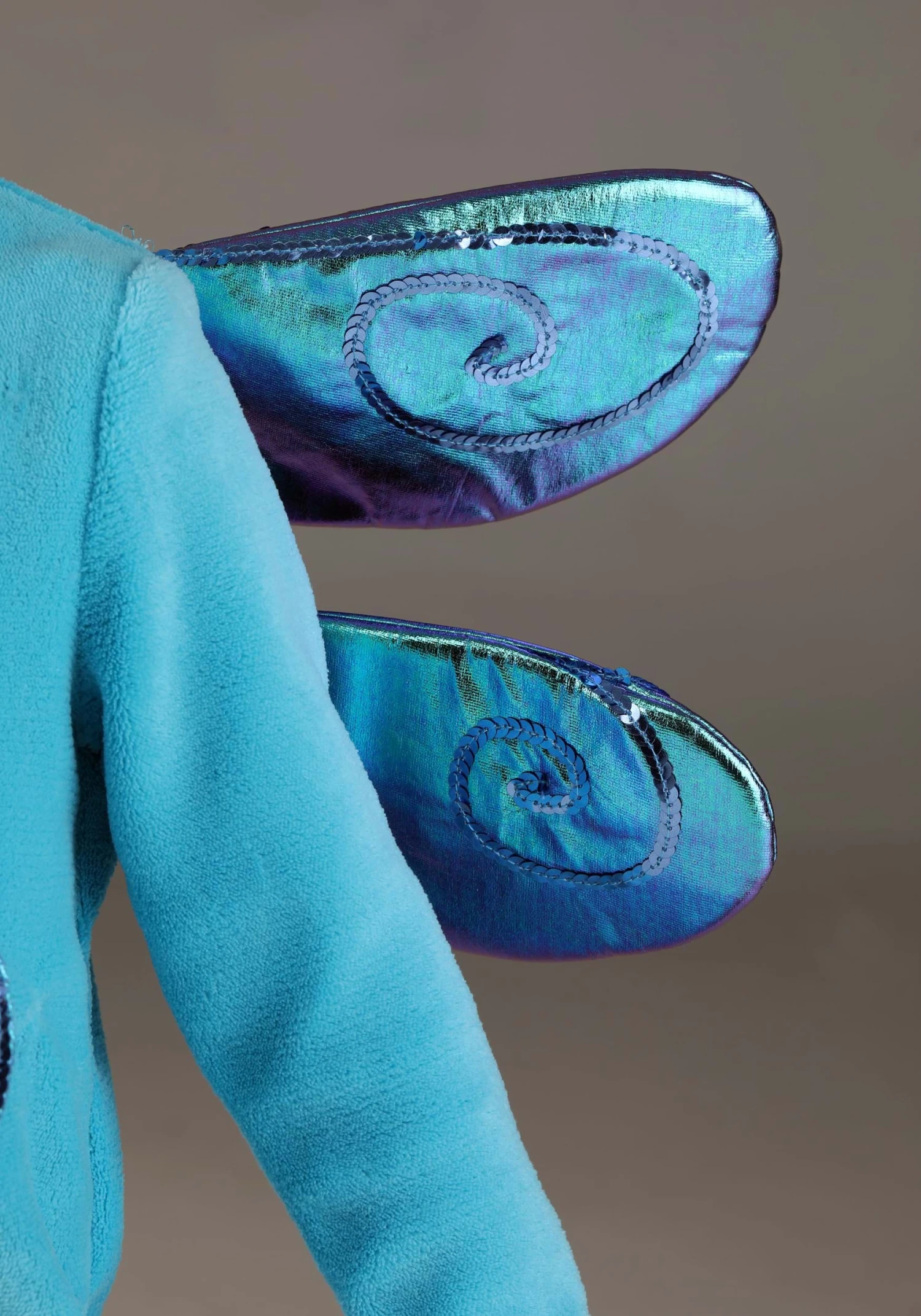 Grab this special Made By Us product today and watch your little bug transform into a beautiful dragonfly for Halloween! This costume comes with a hooded jumpsuit and a pair of shoe covers. The jumpsuit is blue and designed to cover them from the top of their head down to the ankles. The shoe covers will hide their sneakers. Their hands, on the other hand, will be uncovered so they can collect as much candy as possible!