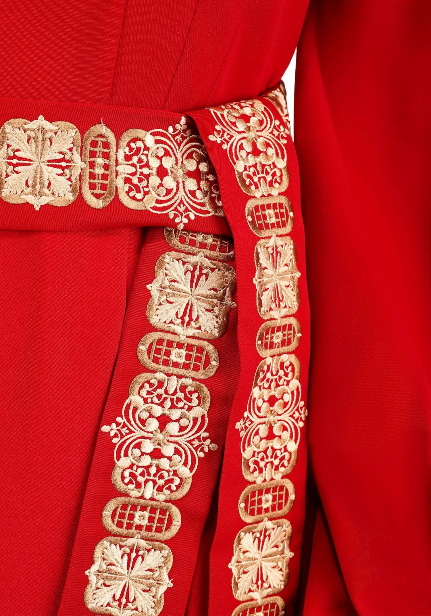 - Belt is same fabric as dress, w/ embroidered graphics; tie as desired