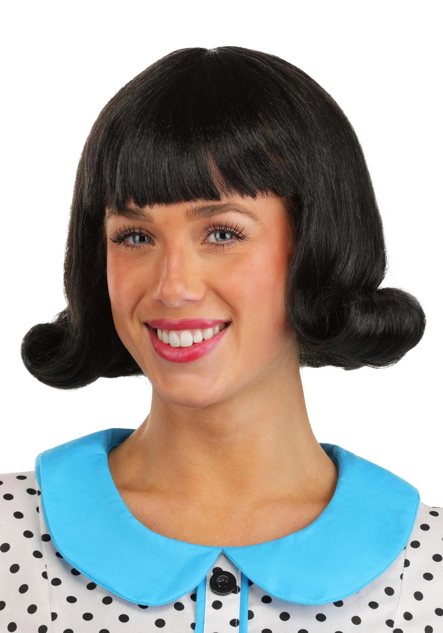 This is an exclusive Women’s Black 50’s Flip Costume Wig.