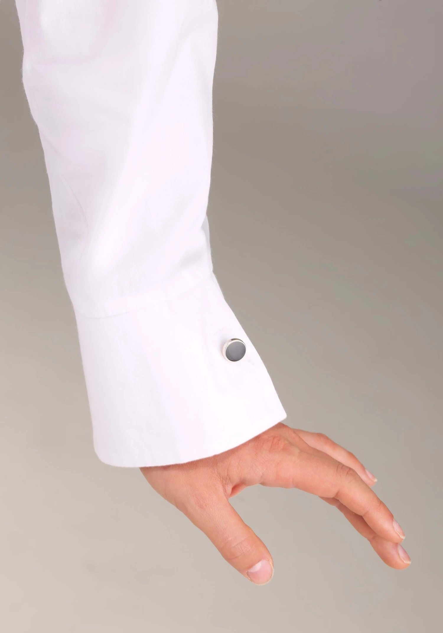 - Sleeve cuffs have hook and loop fastener behind decorative values