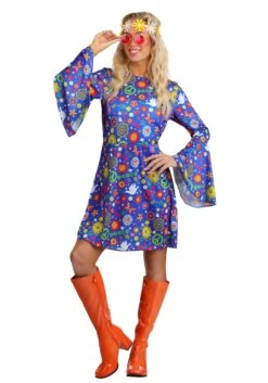 This is an exclusive Women’s Flower Power Hippie Costume Dress.