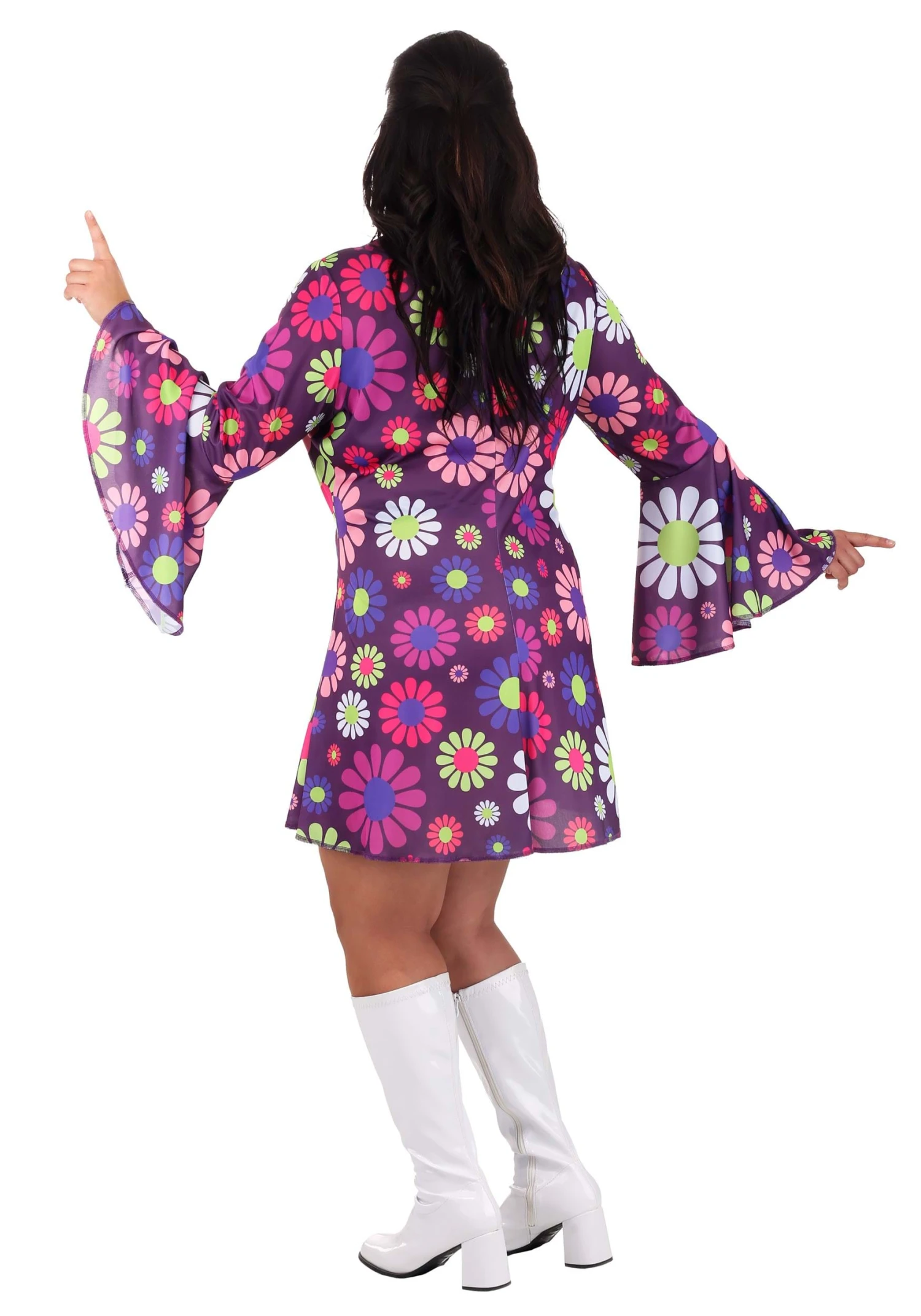 This is an exclusive Women’s Plus Size Groovy Flower Power Costume.