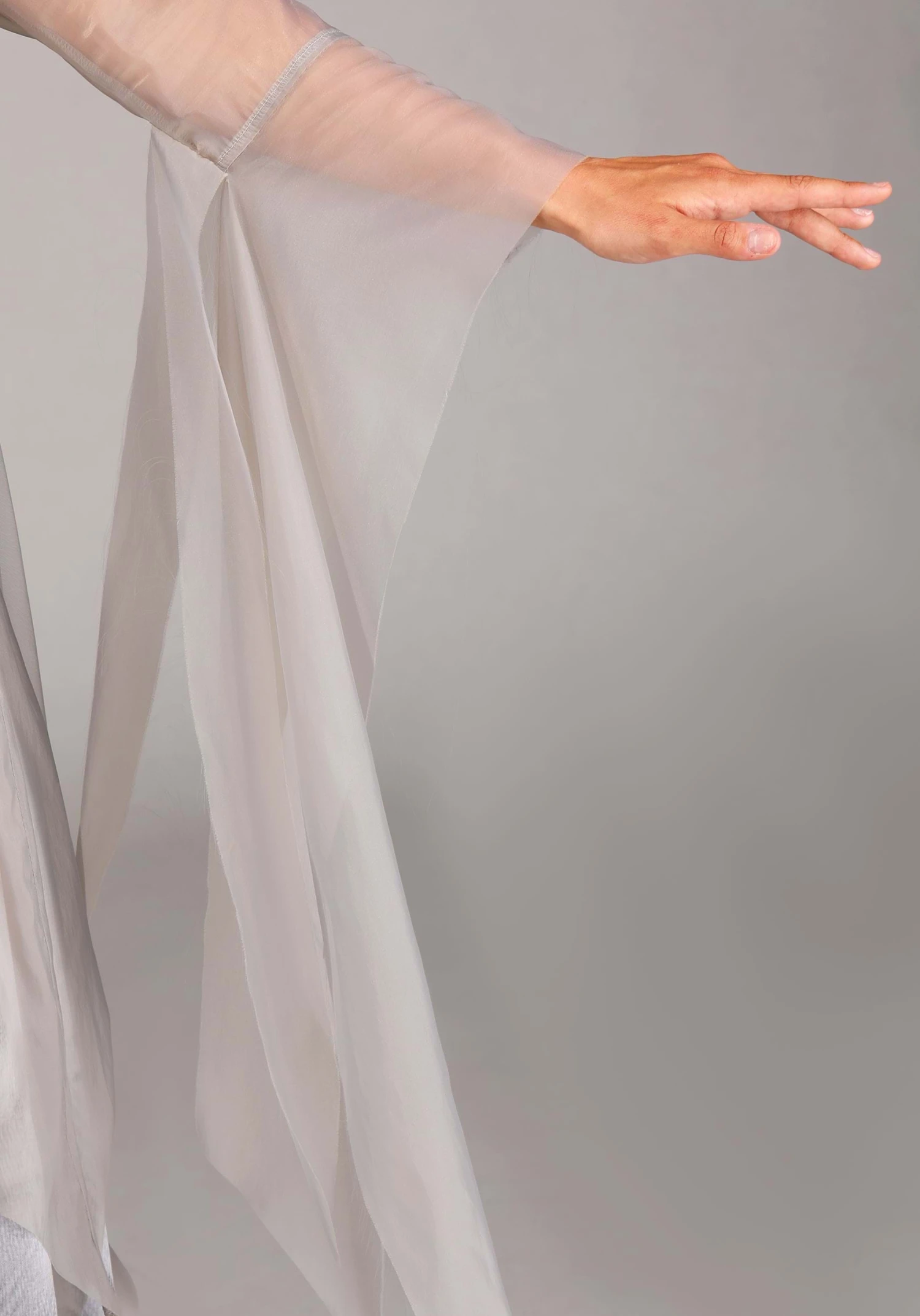- Hooded chiffon cape has metal snap closure on the collar
