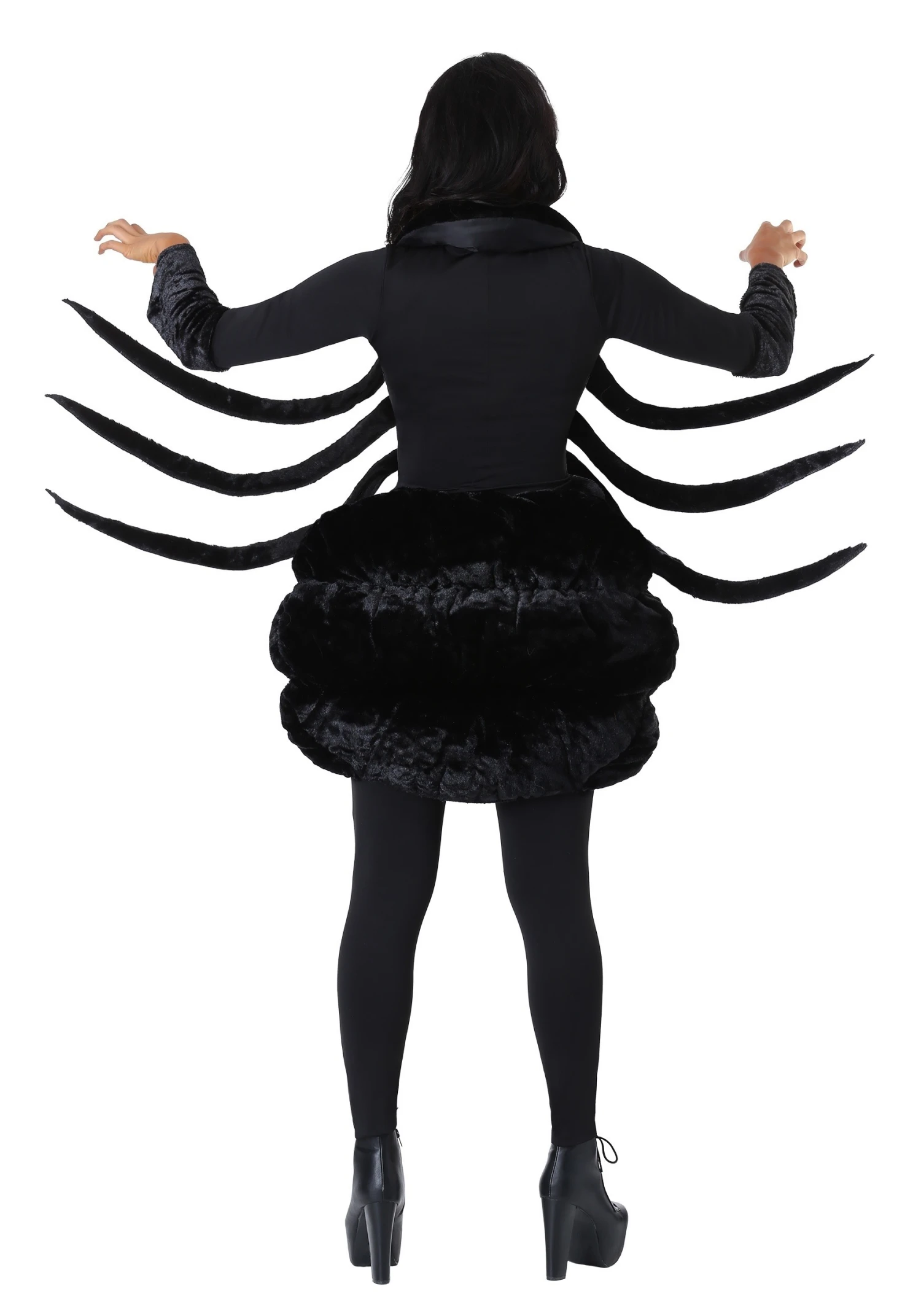 - 3 stuffed velour spider legs sewn into each side seam