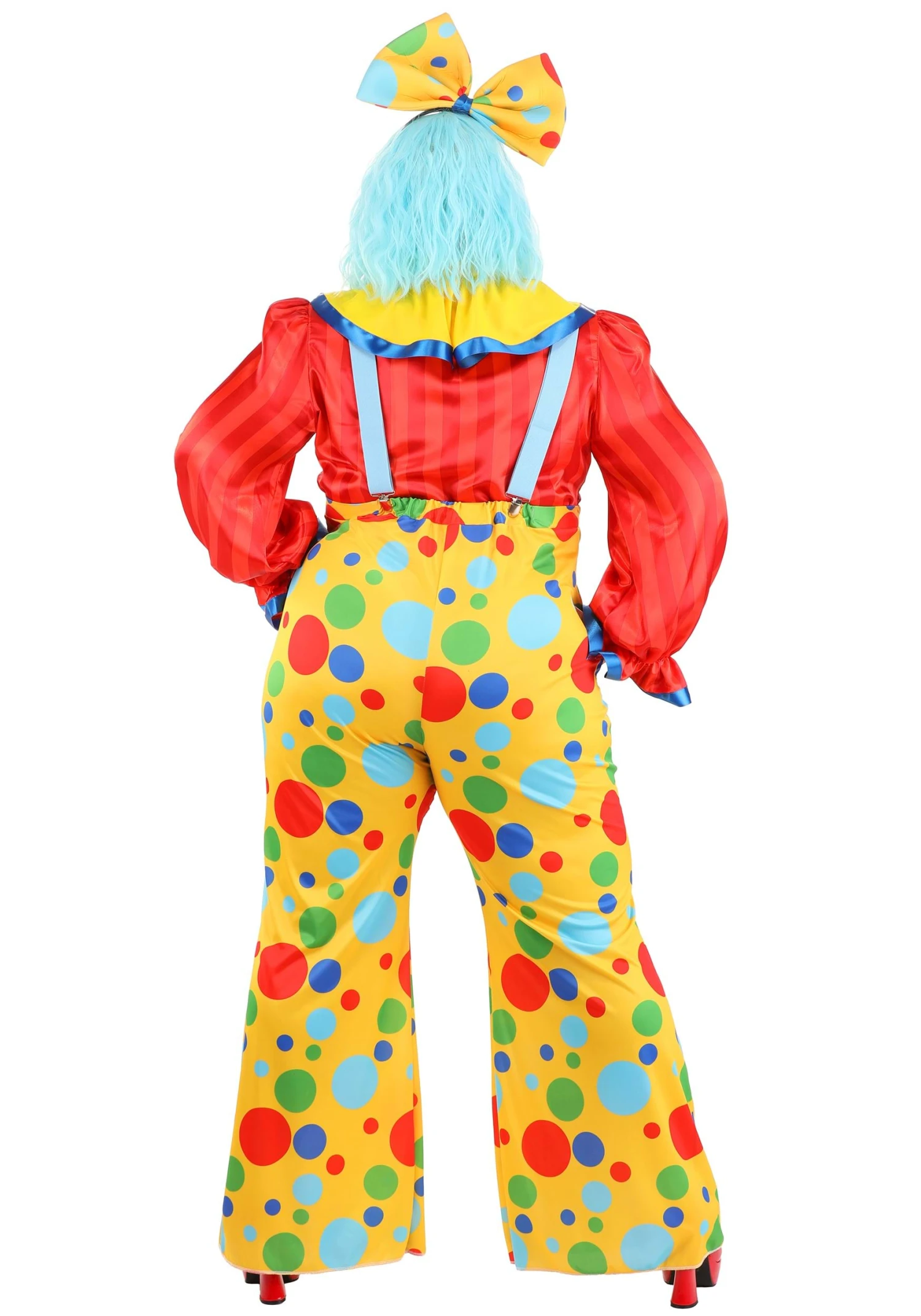 This is an exclusive Women’s Plus Size Posh Polka Dot Clown Costume.