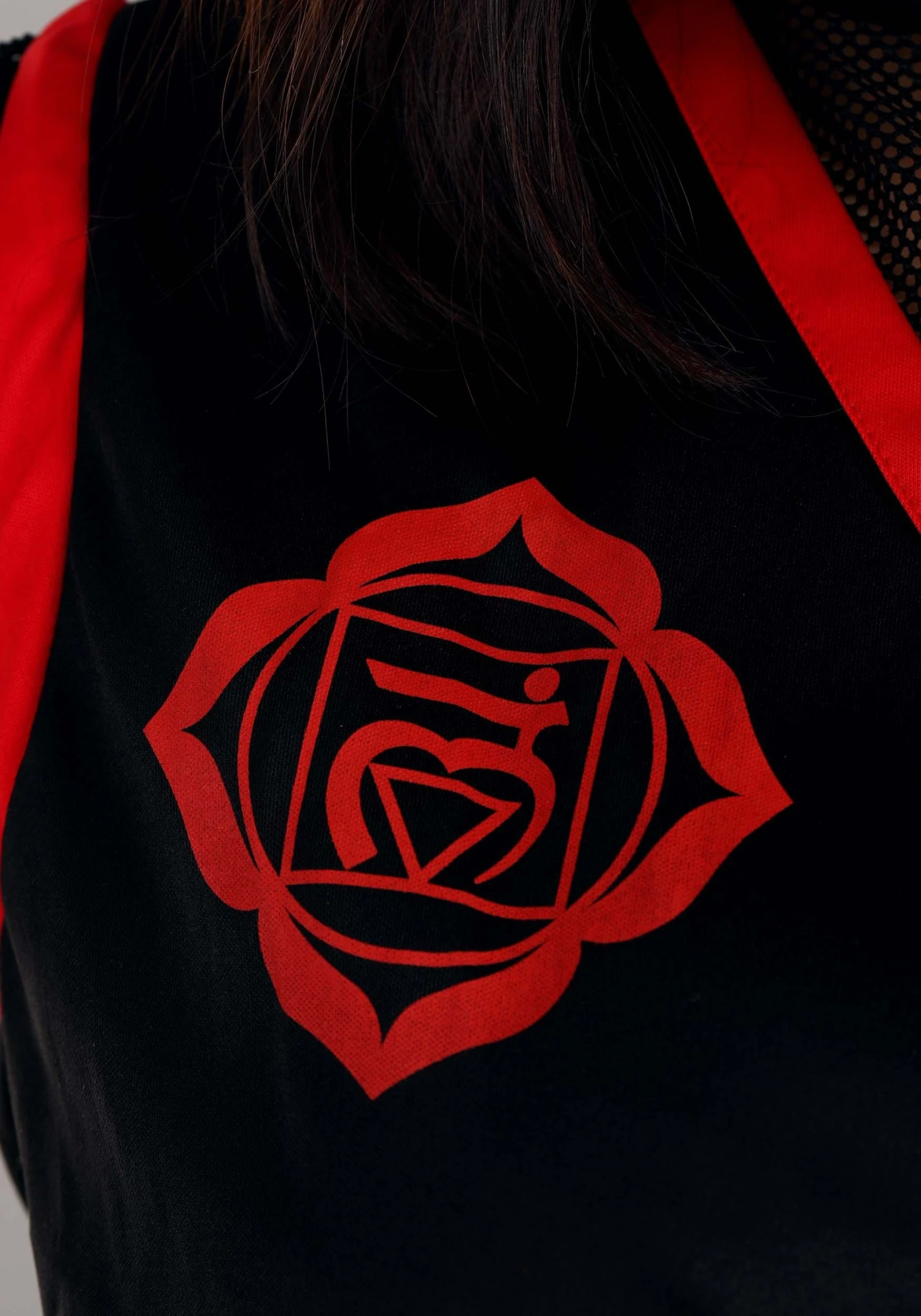 - Tunic has red edge binding, printed graphic on left front