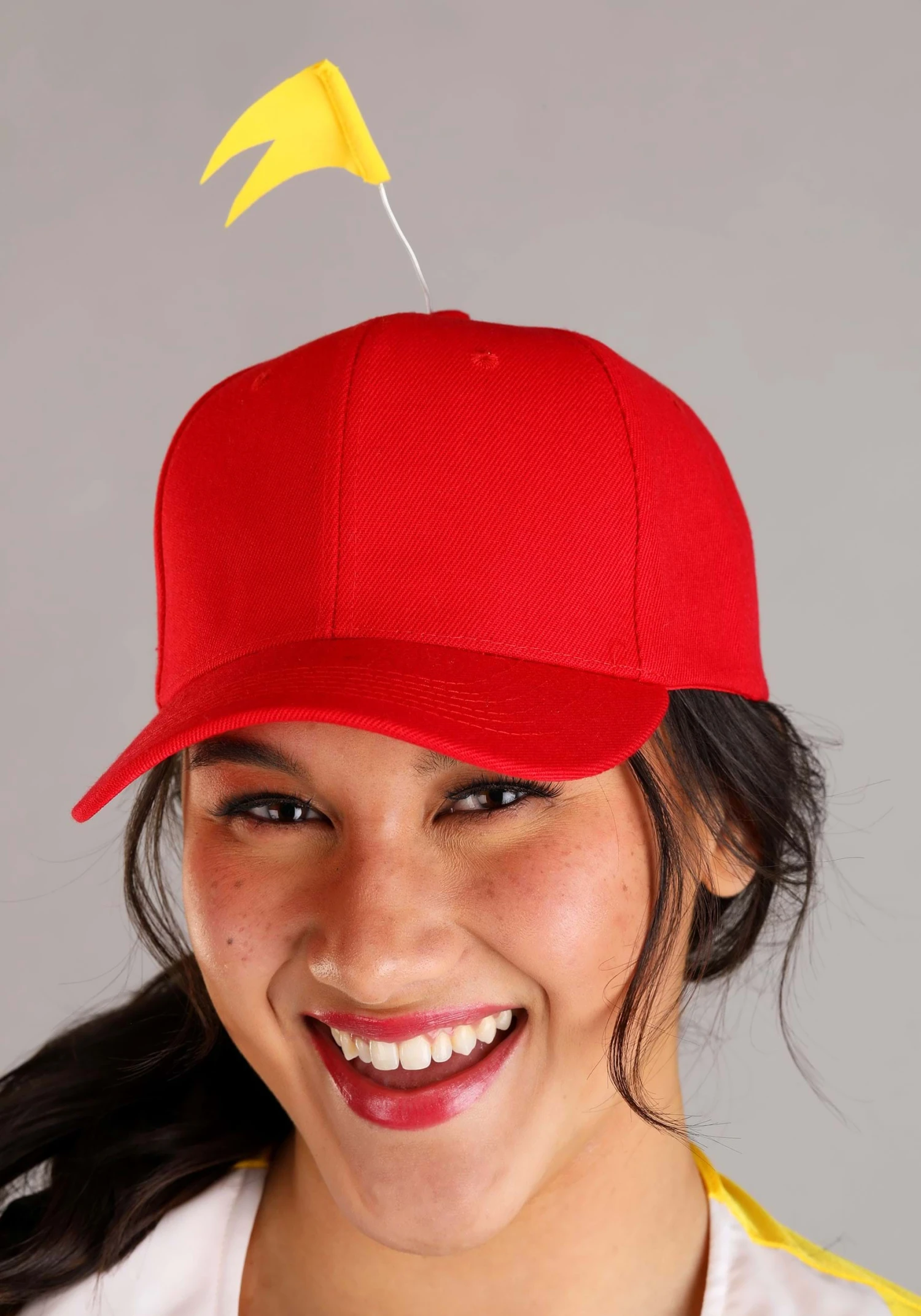 - Baseball style hat has hook and loop fastener size adjustment band at back
