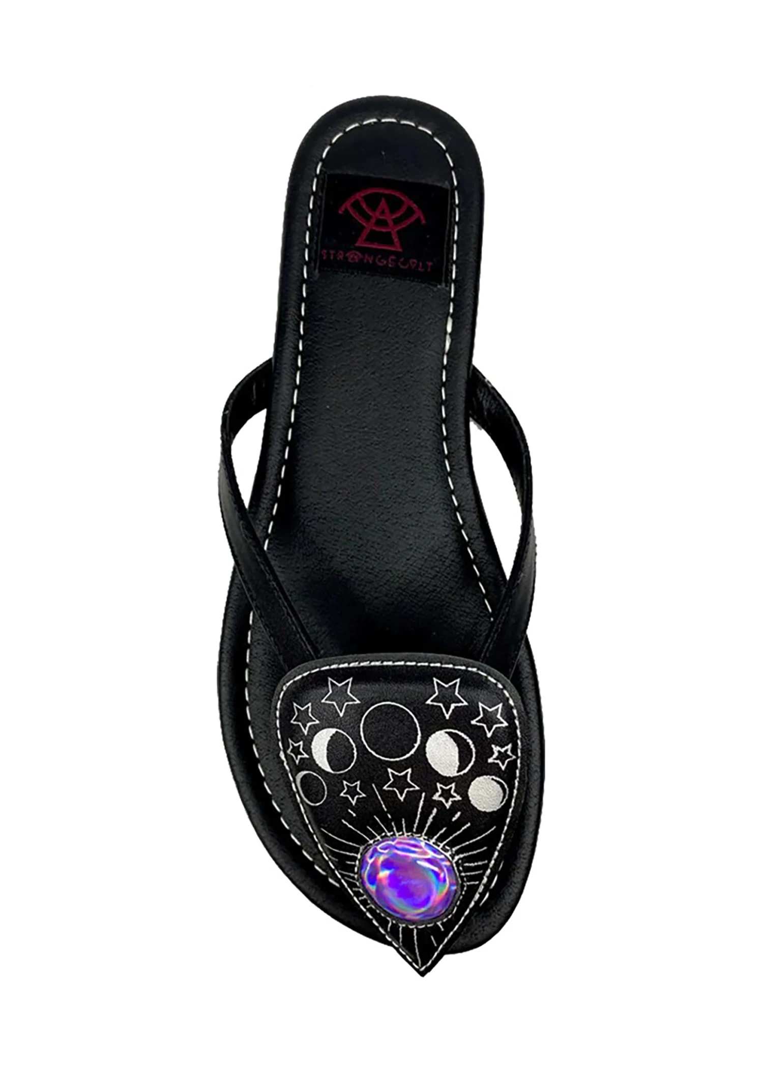 - Stitching details, purple faux gem
