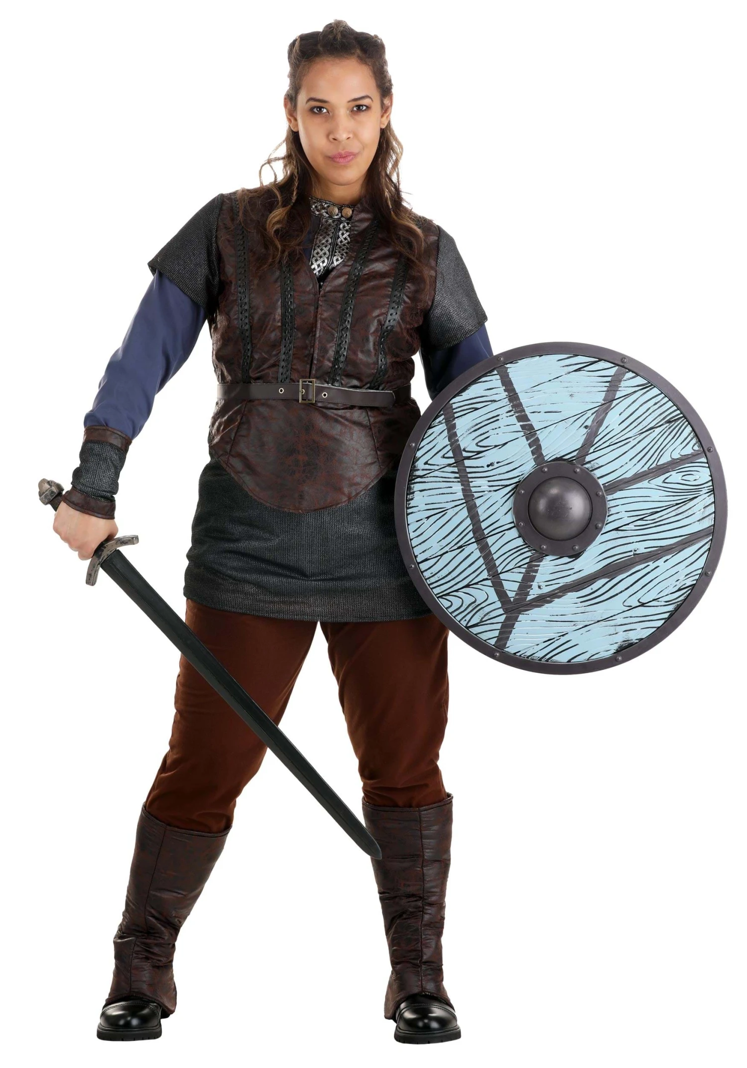 To become shield wall ready, we suggest you start your training now. Turn your shower nob to cold for a shocking wake up in the morning. Eat gruel and dried fish for every meal. Instead of hitting the gym try running through the forest pretending while listening to dramatic action music and throwing an ax at a target in your backyard. And when your friend is complaining about that jerk at work shout, “shield wall!” and confront the problem. Or you could just get in touch with your inner Viking with this rugged Lageartha costume. Just make sure you keep your shield on hand. Lagertha is always ready for a fight!