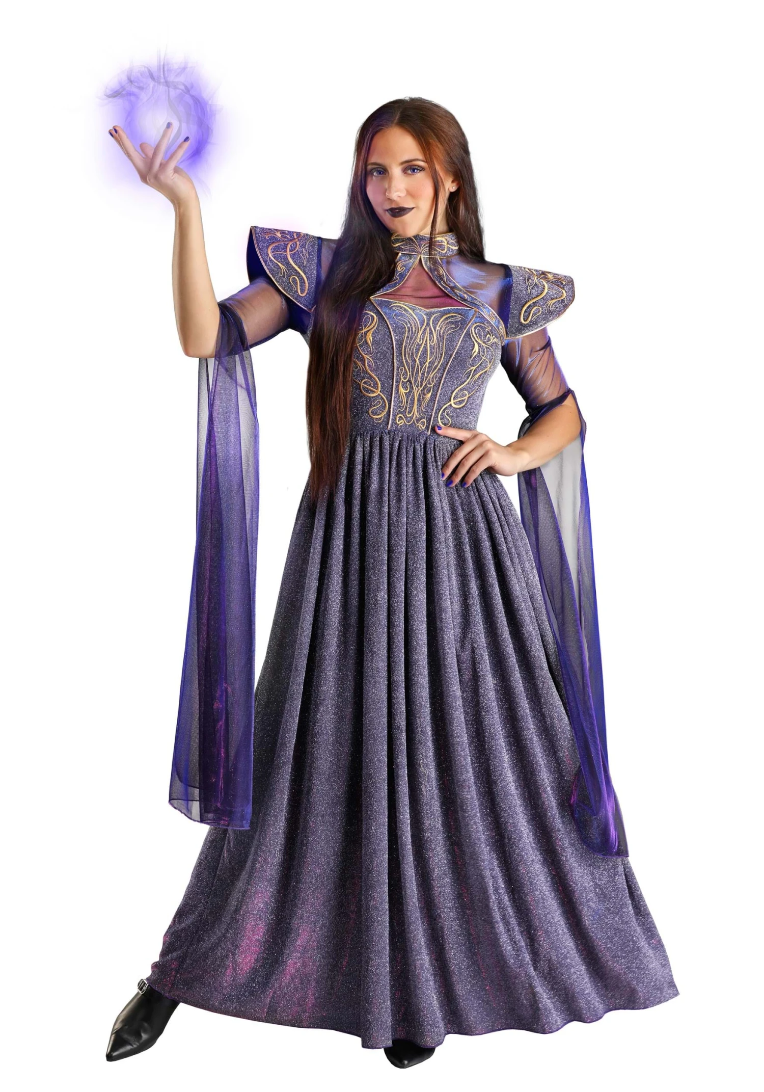 If you’re going to learn how to harness your magic and make your name in the line of powerful sorceresses you belong to, you’ll need a wardrobe to match. Something that showcases the fierce spirit of your ancient bloodline while highlighting the fluid nature of the magic you will wield. We believe our Adult Violet Sorceress Costume is precisely that.