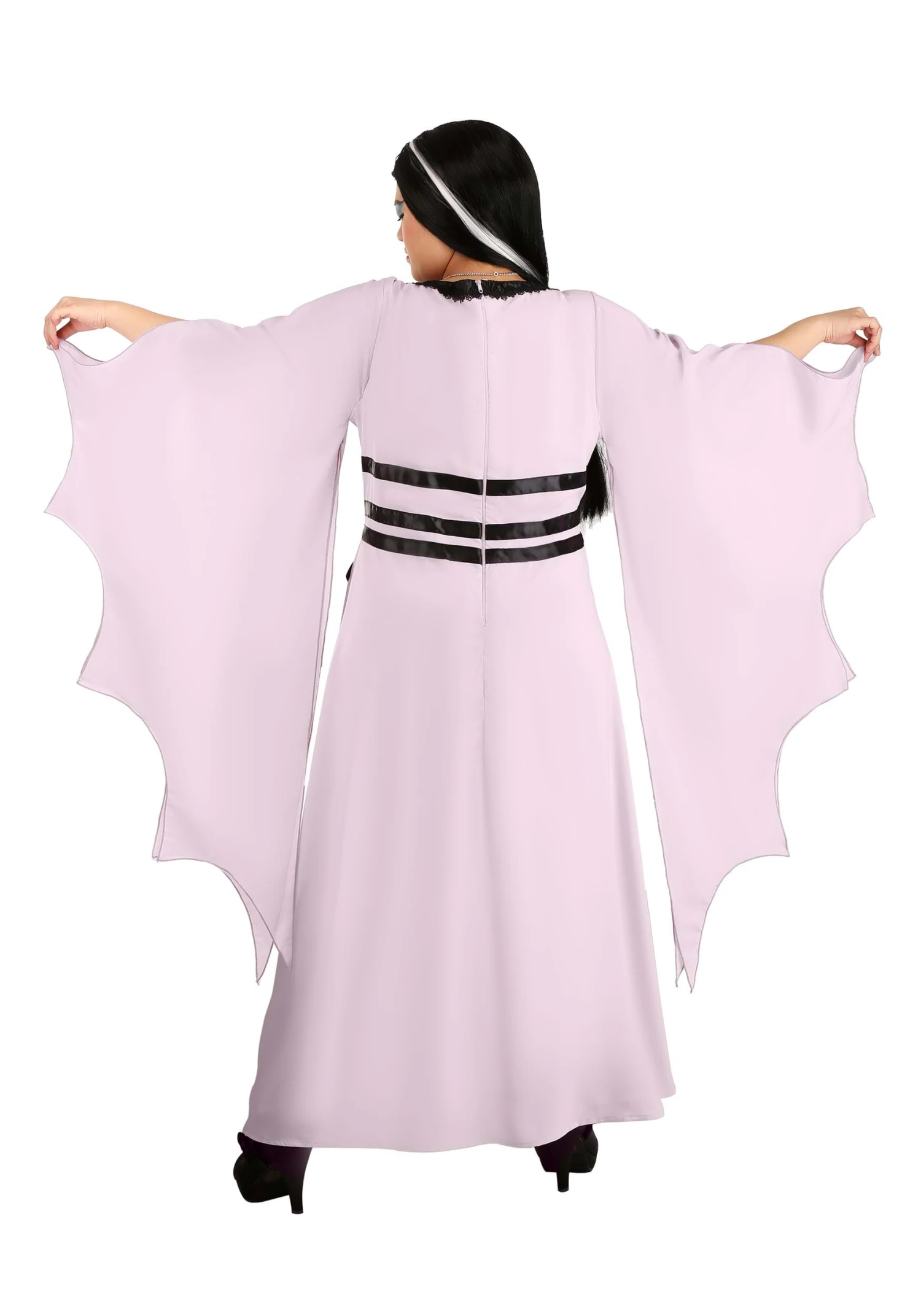 - Chiffon dress has zipper down center back, black ribbon and lacing