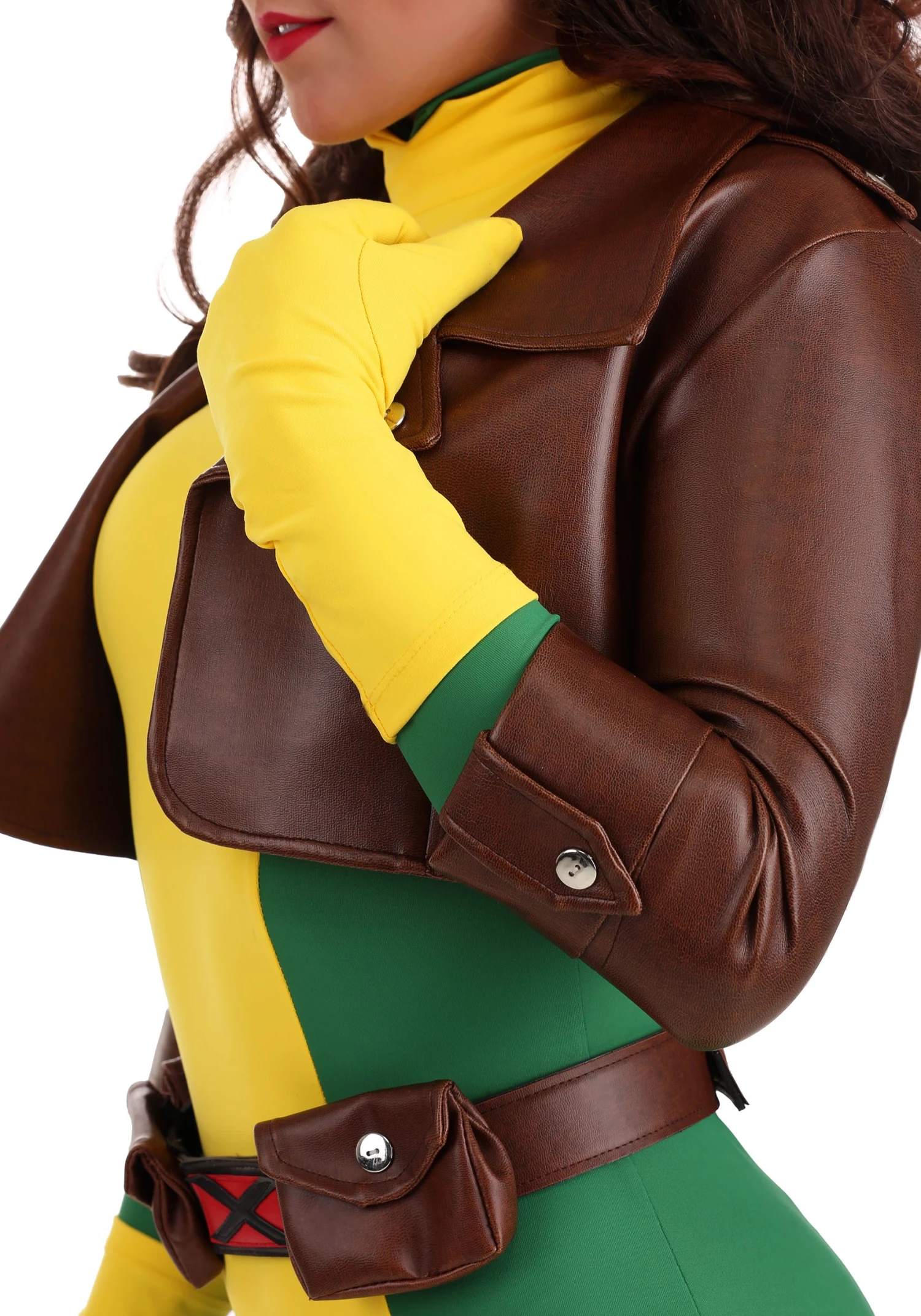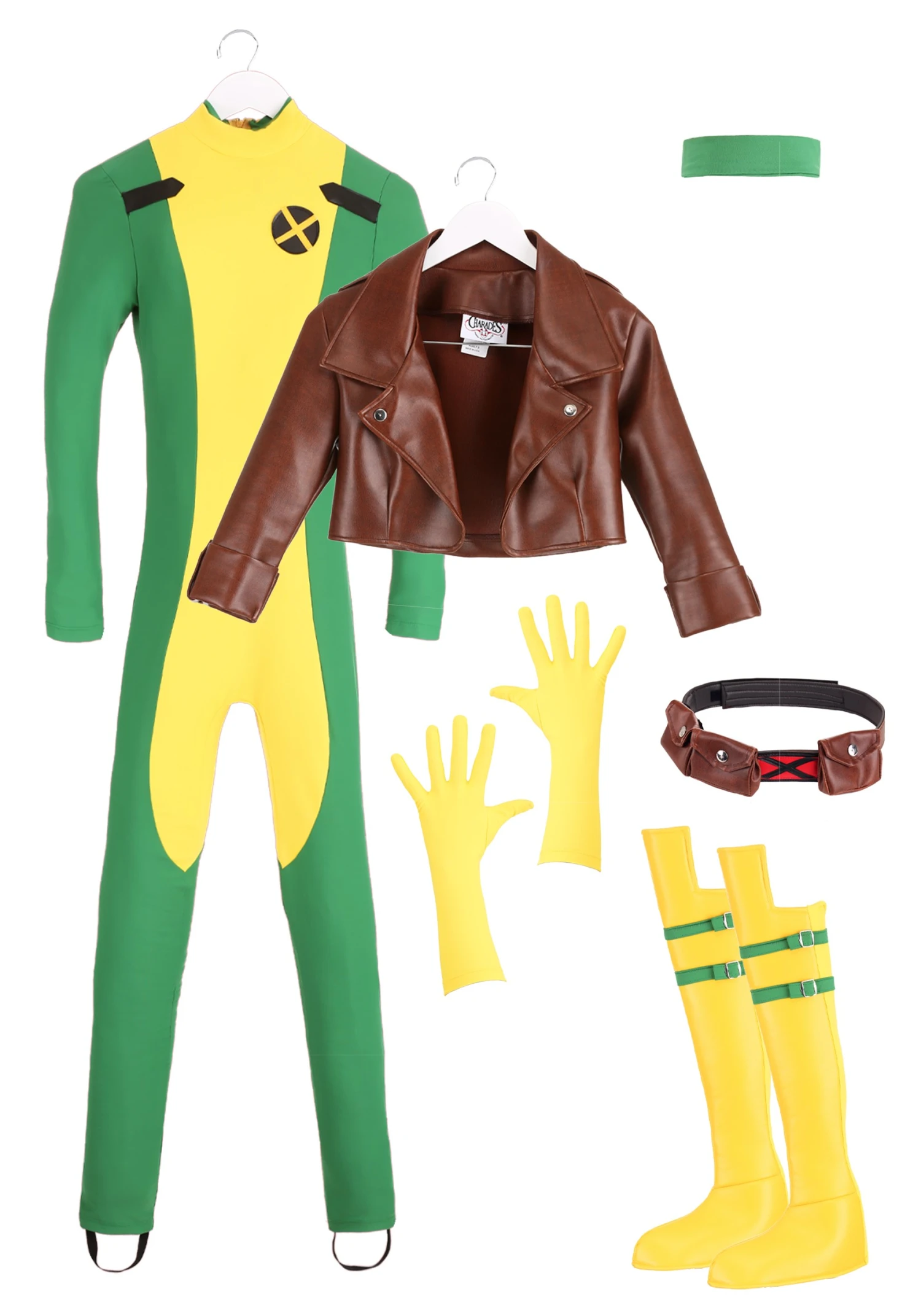 Bring together some of the most amazing powers that have ever come out of the Marvel multiverse with this Premium Rogue costume. This bodysuit has the green and yellow color scheme made especially famous from the animated X-Men show as well as the iconic X logo on the chest. A little style goes a long way with a cropped faux-leather jacket and thigh-high boot covers! Don’t forget your yellow gloves or skin contact could be dangerous for others. (That white streak in Rogue’s hair came from permanently absorbing Captain Marvel’s powers and nearly killing them both, after all!)