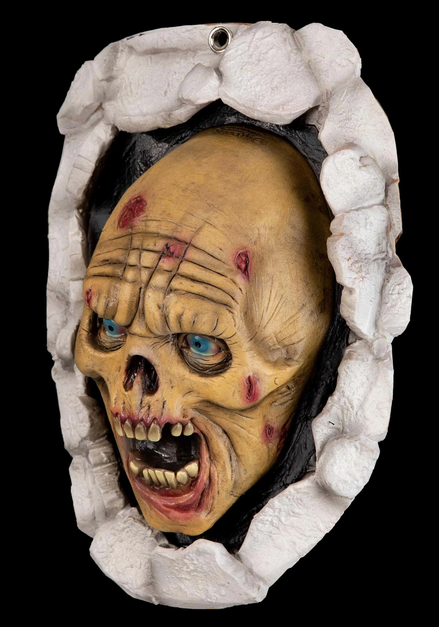 This incredibly realistic Zombie Breaking Wall Decoration is the perfect way to give your home an apocalypse vibe this Halloween! The molded decoration is shaped like a rotting, snarling zombie bursting through a hole in a shattered rock wall.